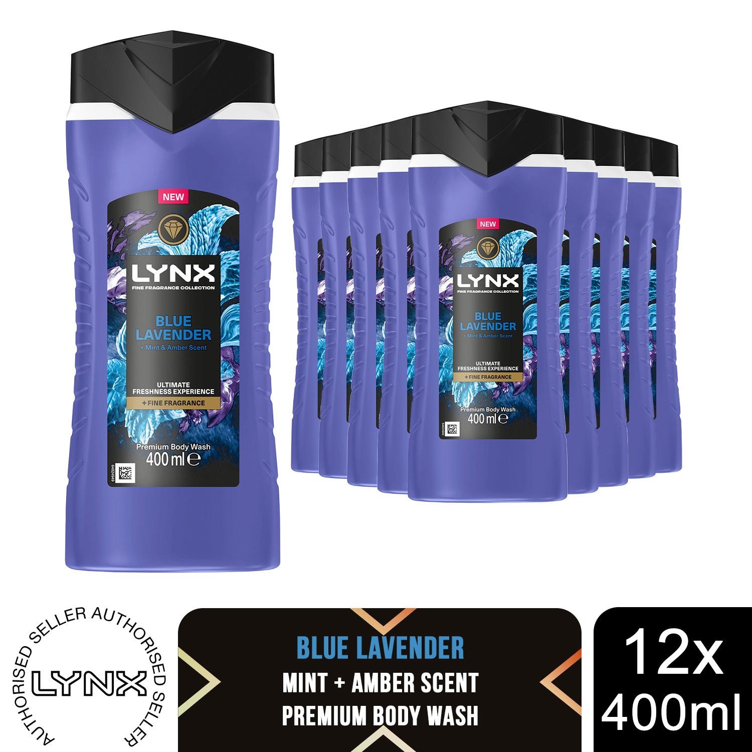 Lynx Blue Lavender Body Wash with 12Hrs of Freshness for Men 400ml, 12 Pack