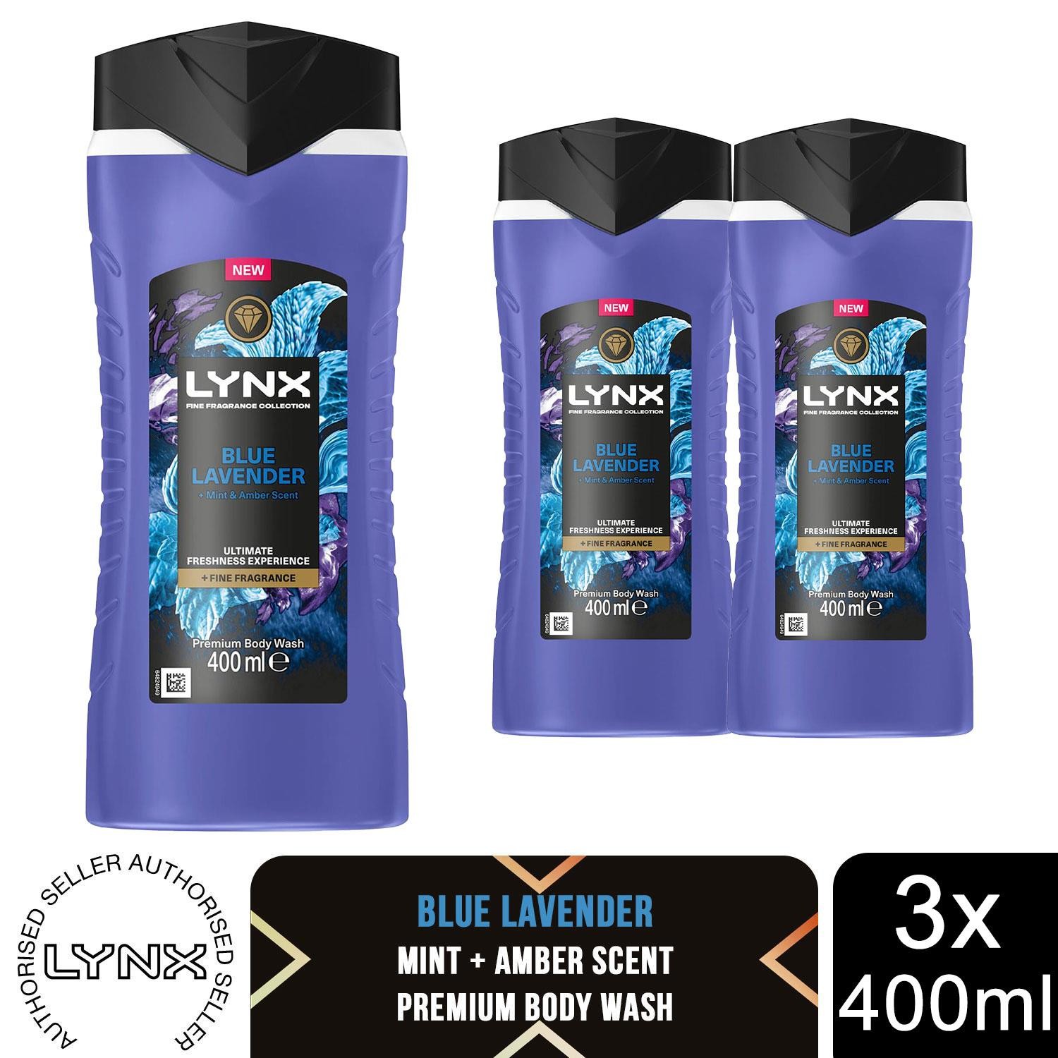 3 x Lynx Blue Lavender Body Wash with 12Hrs of Freshness for Men 400ml, 3 Pack