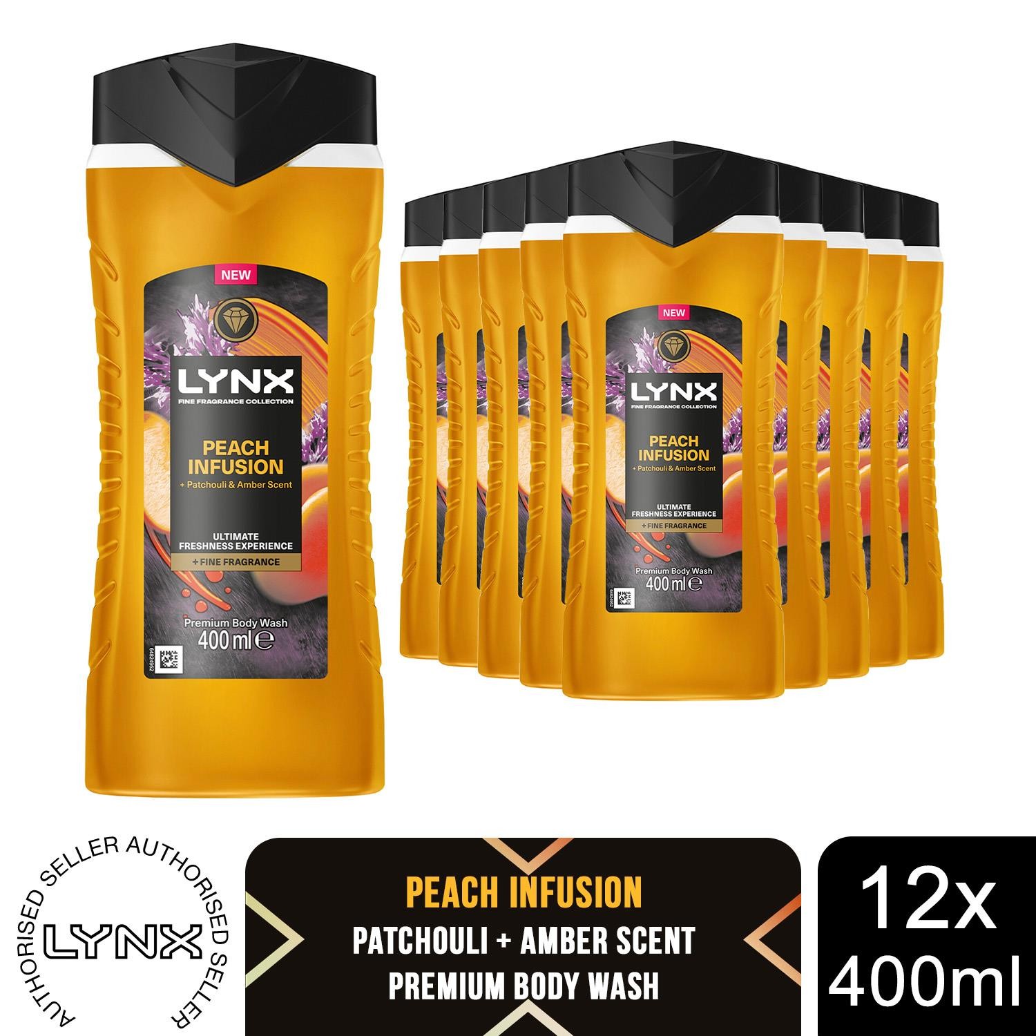 Lynx Peach Infusion Body Wash with 12Hrs of Freshness for Men 400ml, 12 Pack