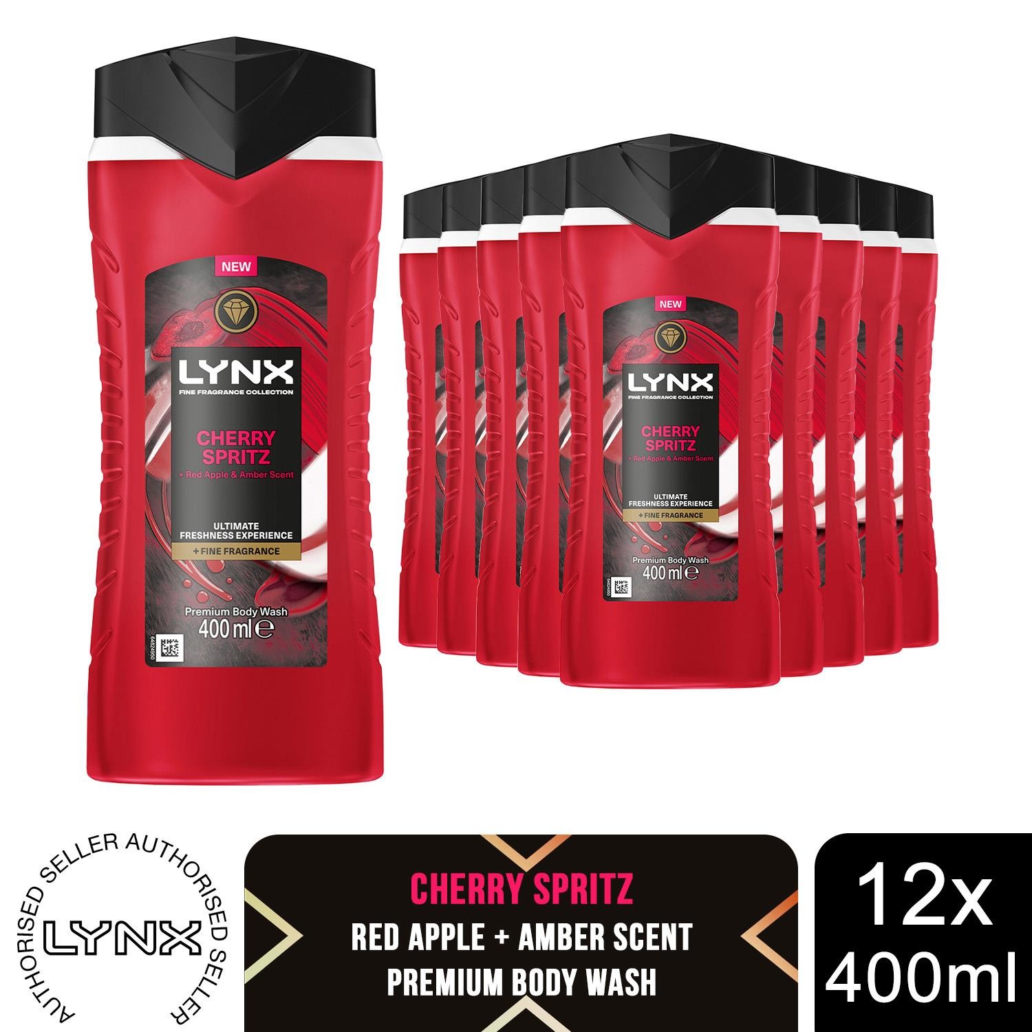 Lynx Cherry Spritz Body Wash with 12Hrs of Freshness for Men 400ml, 12 Pack