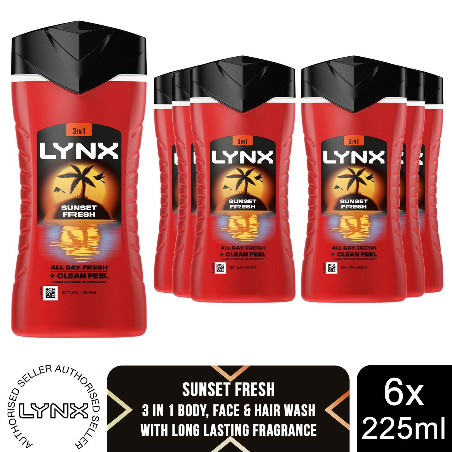 Lynx Sunset Fresh Body Wash for Men 225ml, 6 Pack