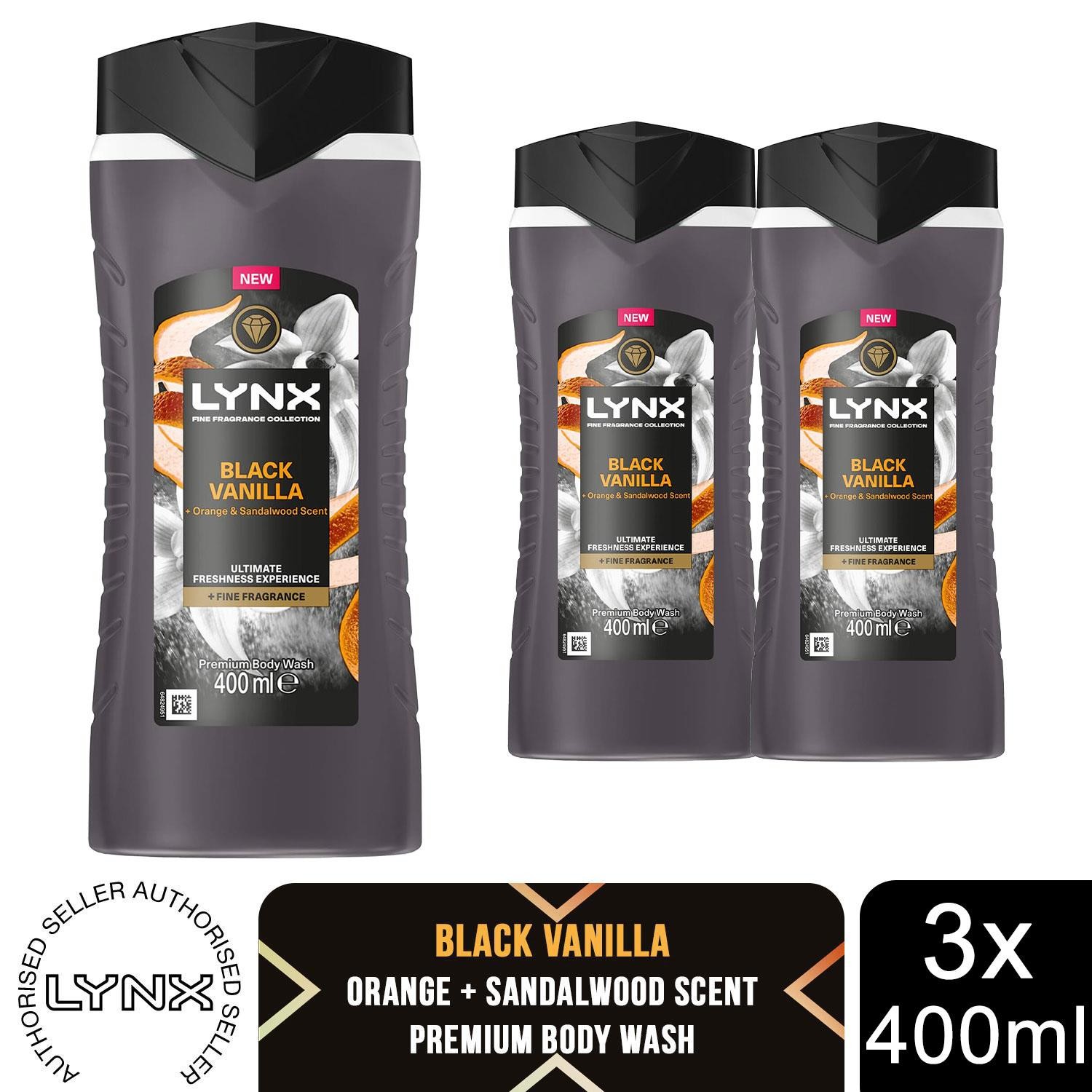 Lynx Black Vanilla Body Wash with 12Hrs of Freshness for Men 400ml, 3 Pack