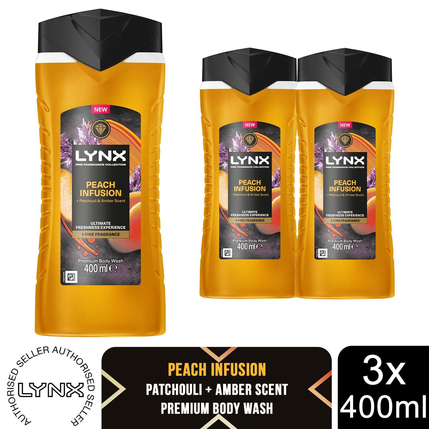Lynx Peach Infusion Body Wash with 12Hrs of Freshness for Men 400ml, 3 Pack
