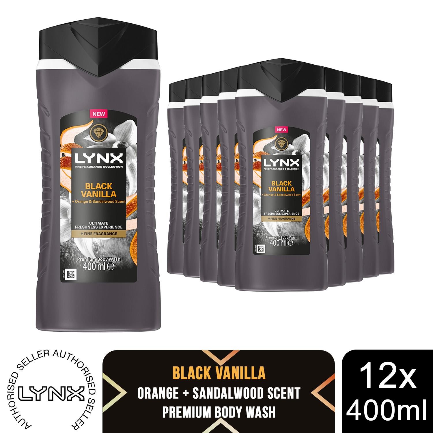 Lynx Black Vanilla Body Wash with 12Hrs of Freshness for Men 400ml, 12 Pack