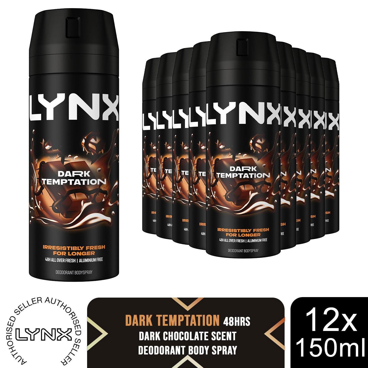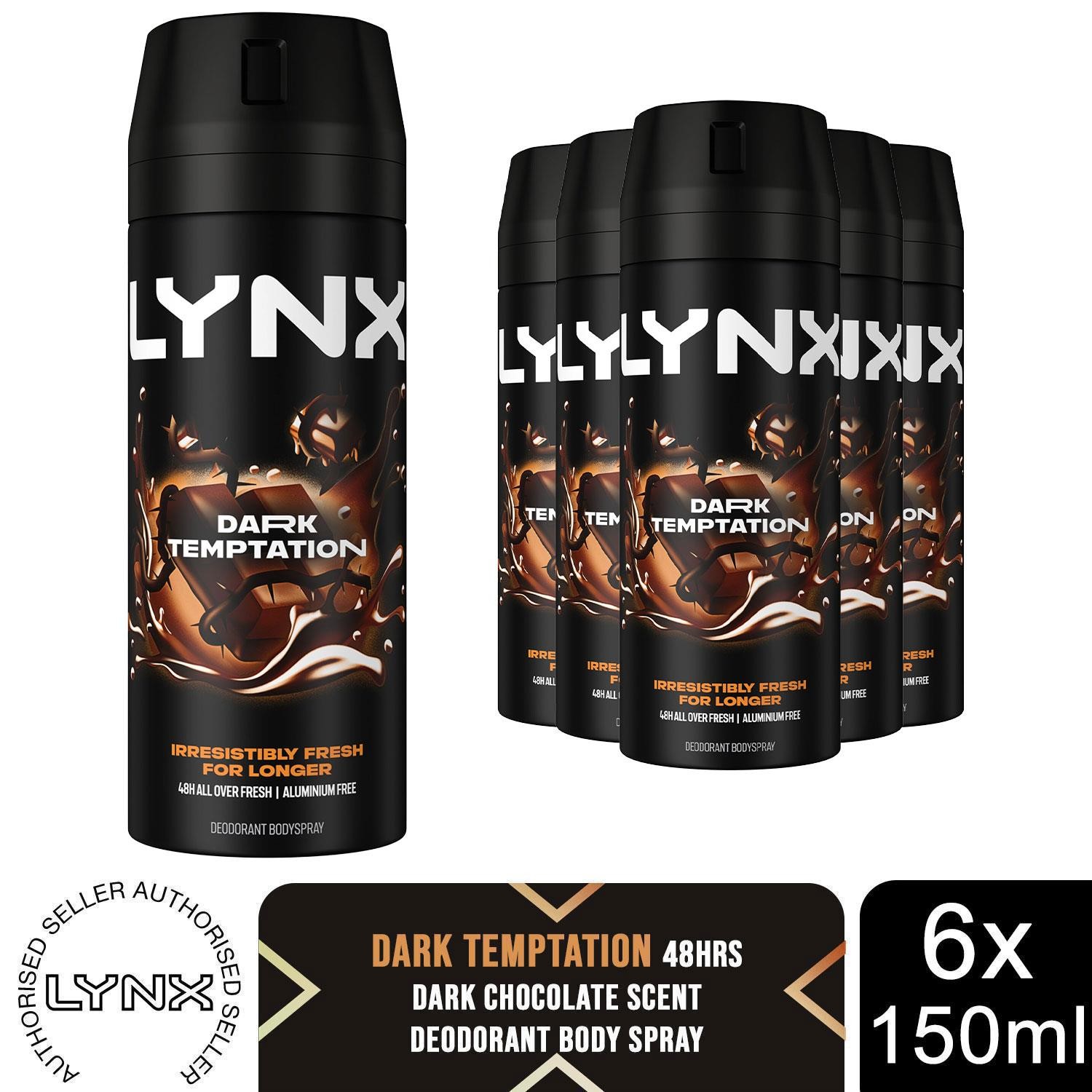 6 x 150ml Lynx DARK TEMPTATION Deodorant Spray Free 48h Tracked Delivery
