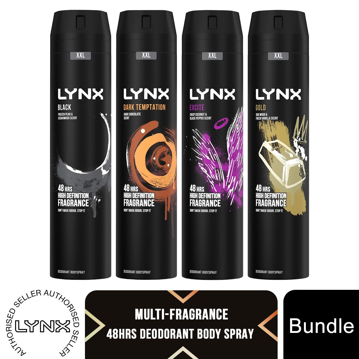 Lynx XXL Body Spray 4pk Bundle of 250ml - Black, Gold, Excite & Dark Temptation