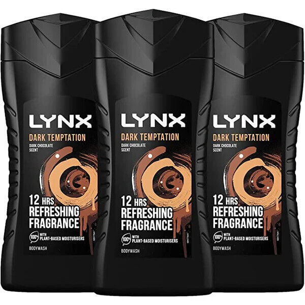3 x Lynx Dark Temptation 12H Refreshing Fragrance Shower Gel Bodywash 225ml