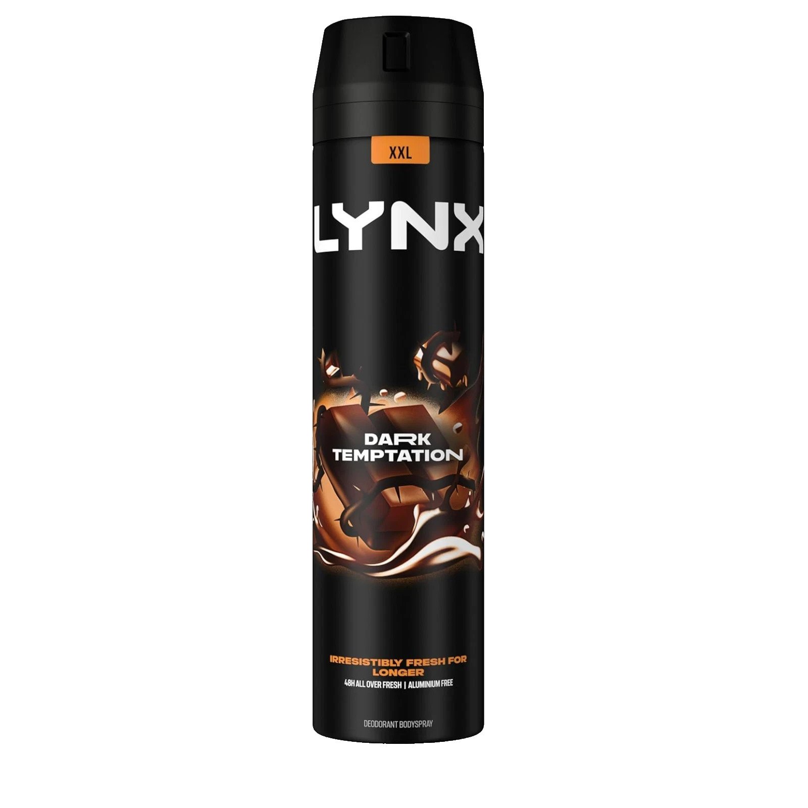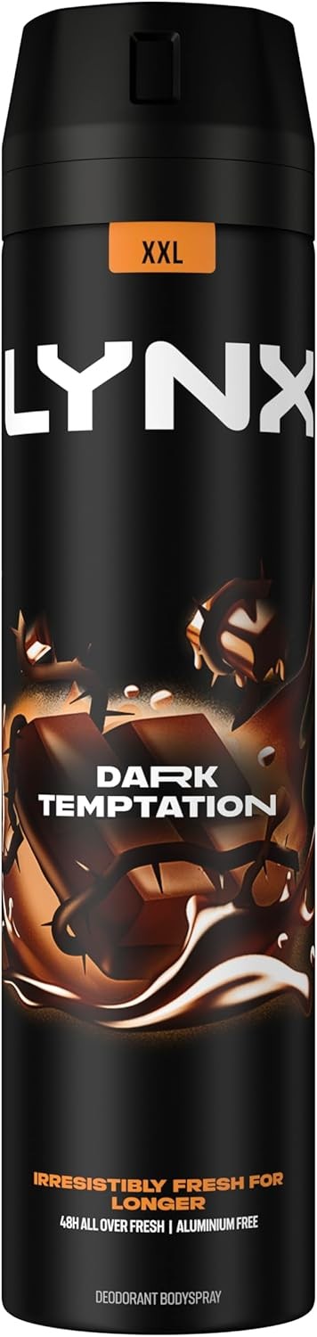 Lynx Men Dark Temptation Deodorant Body Spray for 48 hours of odour-busting, high definition fragrance with a smooth dark chocolate scent 250 ml