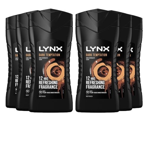 Lynx Dark Temptation 3-in-1 Body Wash 225ml, Pack of 6 - Chocolate Scented