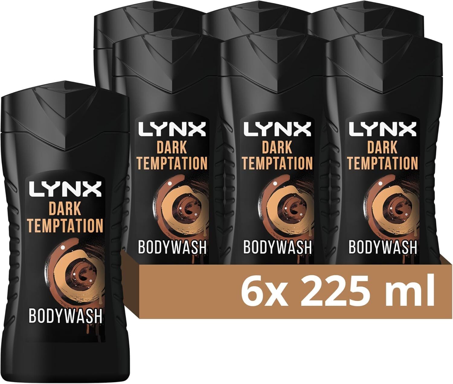 Lynx Dark Temptation Body Wash Body Cleanser shower gel with an intense scent of rich chocolate for an all day fresh & clean feel 6x 225 ml