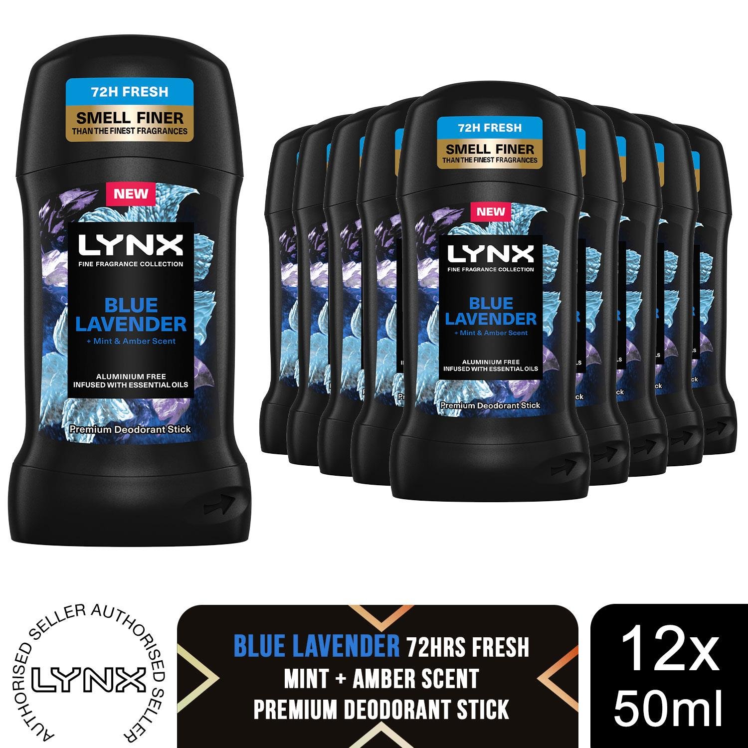 Lynx Mens Deodorant Stick Blue Lavender with 72Hrs Freshness 50ml, 12 Pack - Size 50 ml