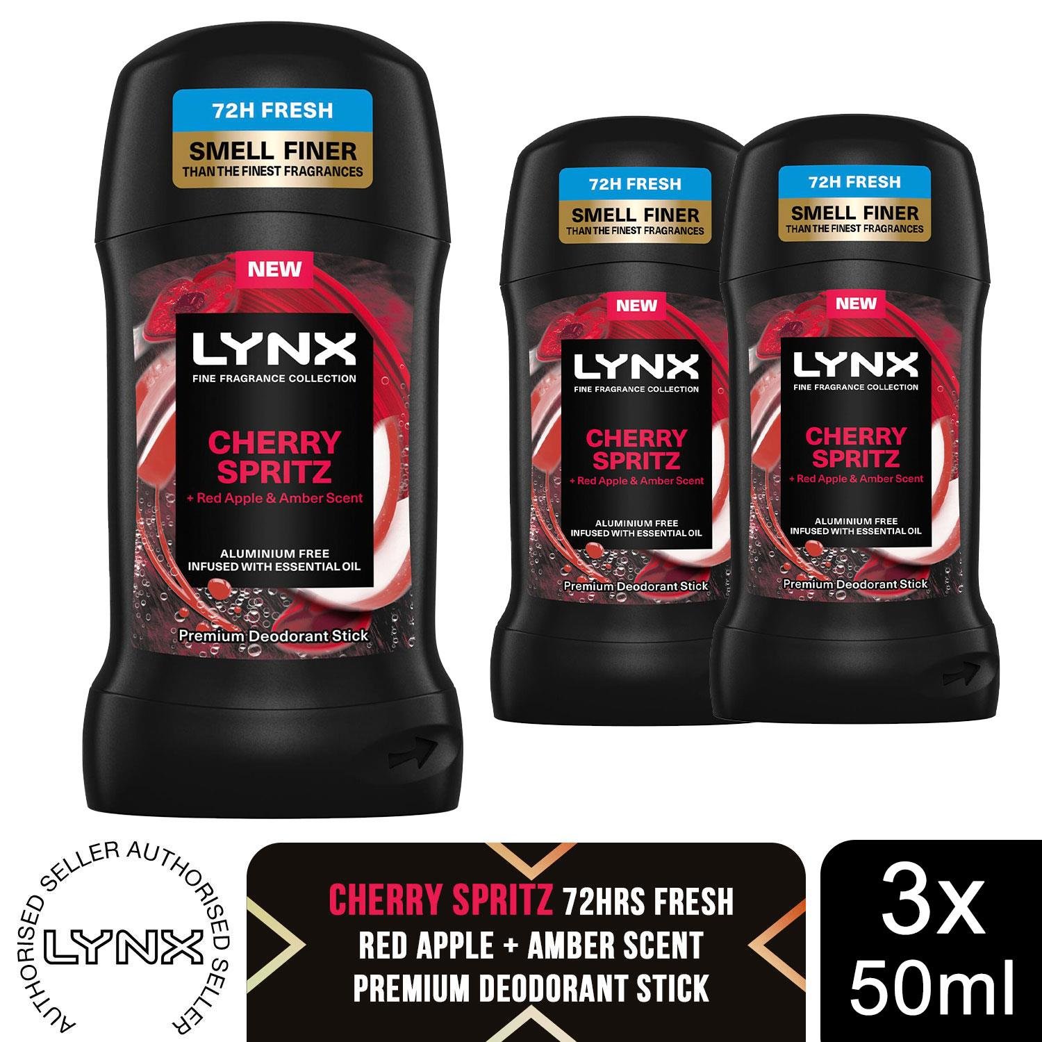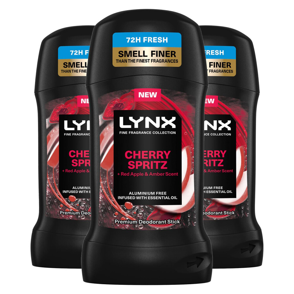 Lynx Deodorant Stick Cherry Spritz with 72Hrs Freshness 50ml, 3 Pack - Apple - One Size