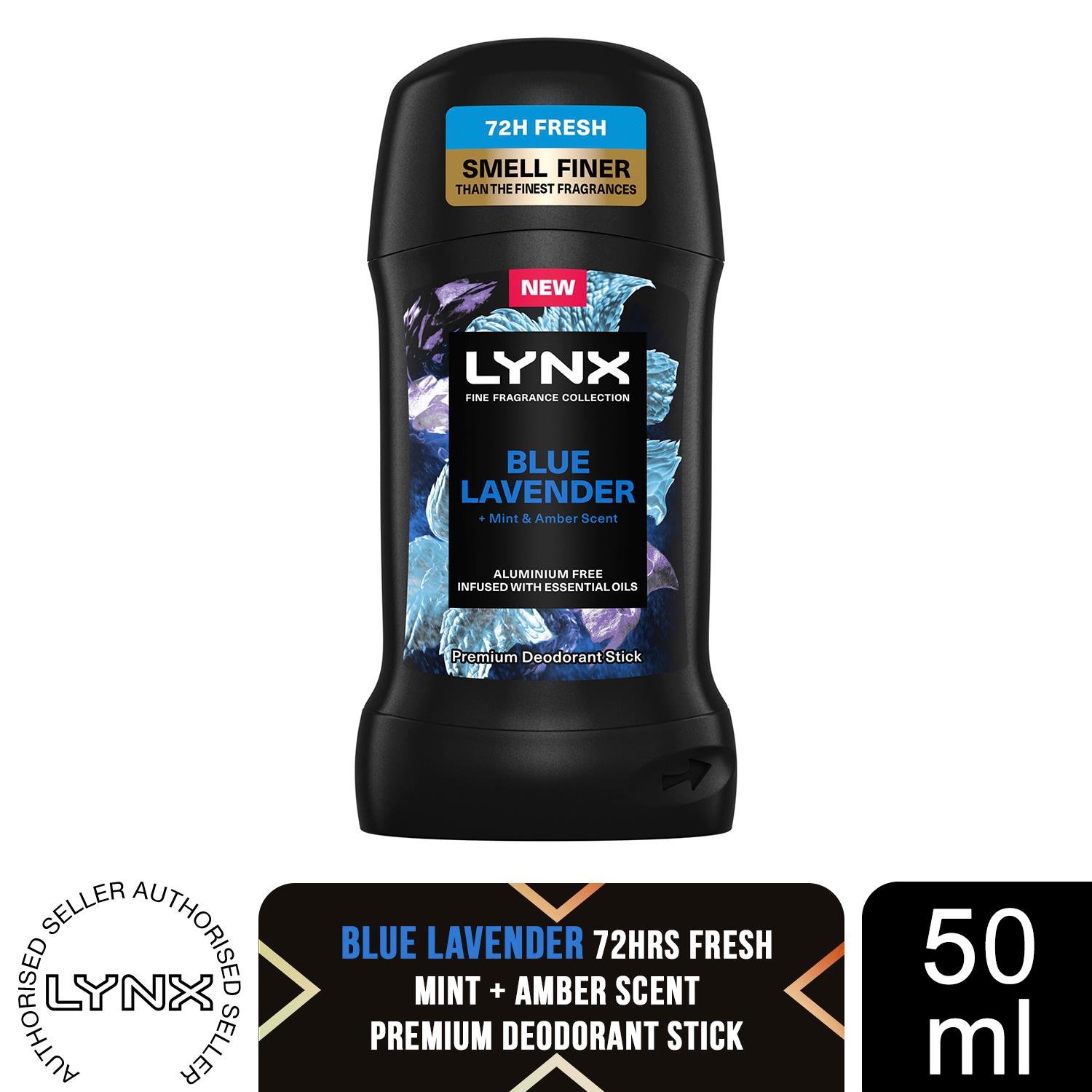 Lynx Fine Fragrance Collection Blue Lavender Premium Deodorant Stick Men's Deodorant with a lavender, mint & amber fragrance for 72 hour odour protection 50 ml