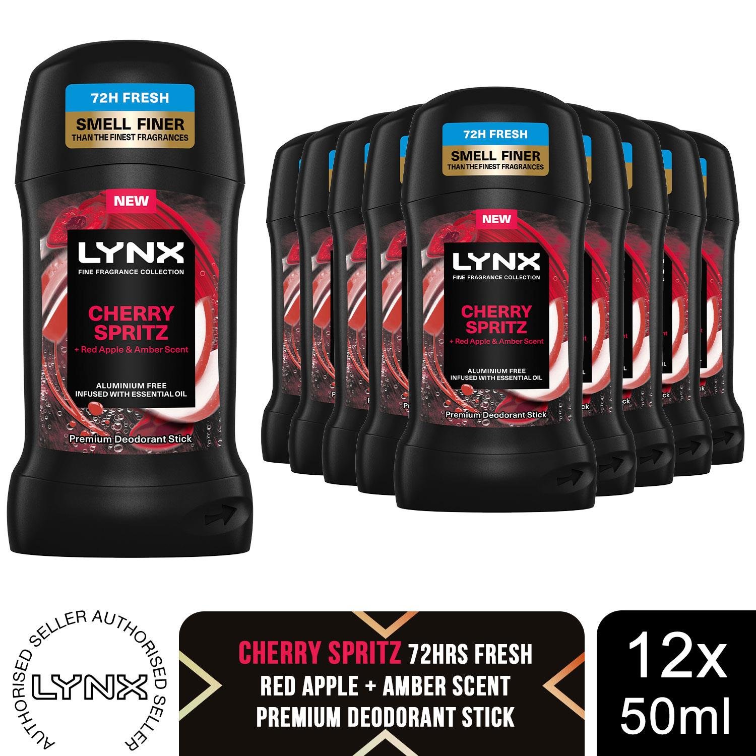 Lynx Mens Deodorant Stick Cherry Spritz with 72Hrs Freshness 50ml, 12 Pack - Apple - Size 50 ml