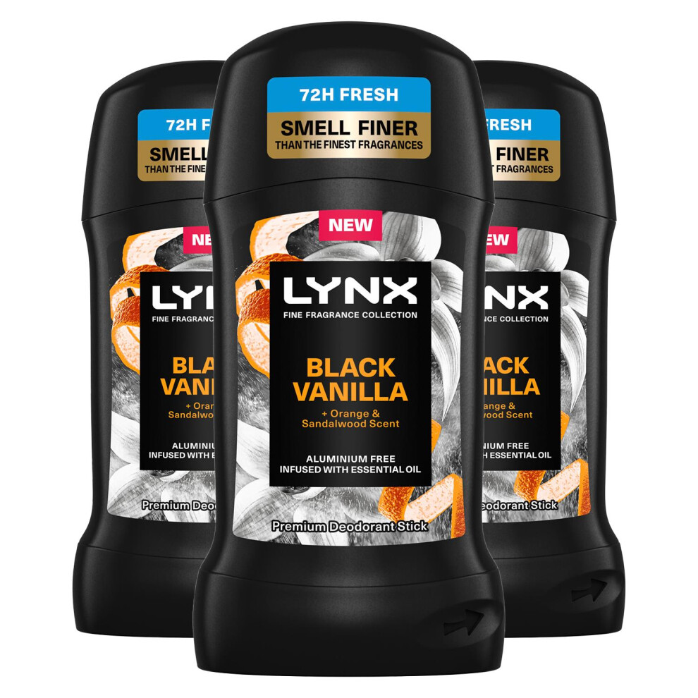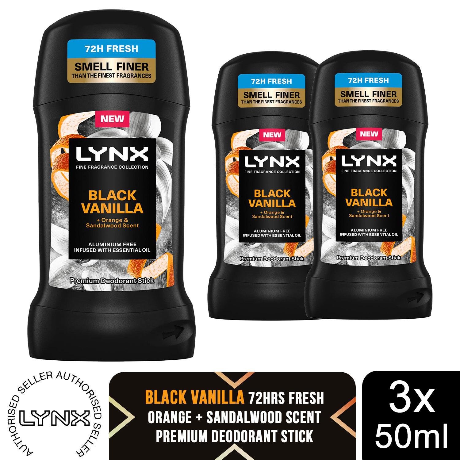 Lynx Deodorant Stick Black Vanilla with 72Hrs Freshness 50ml, 3 Pack - Size 50 ml