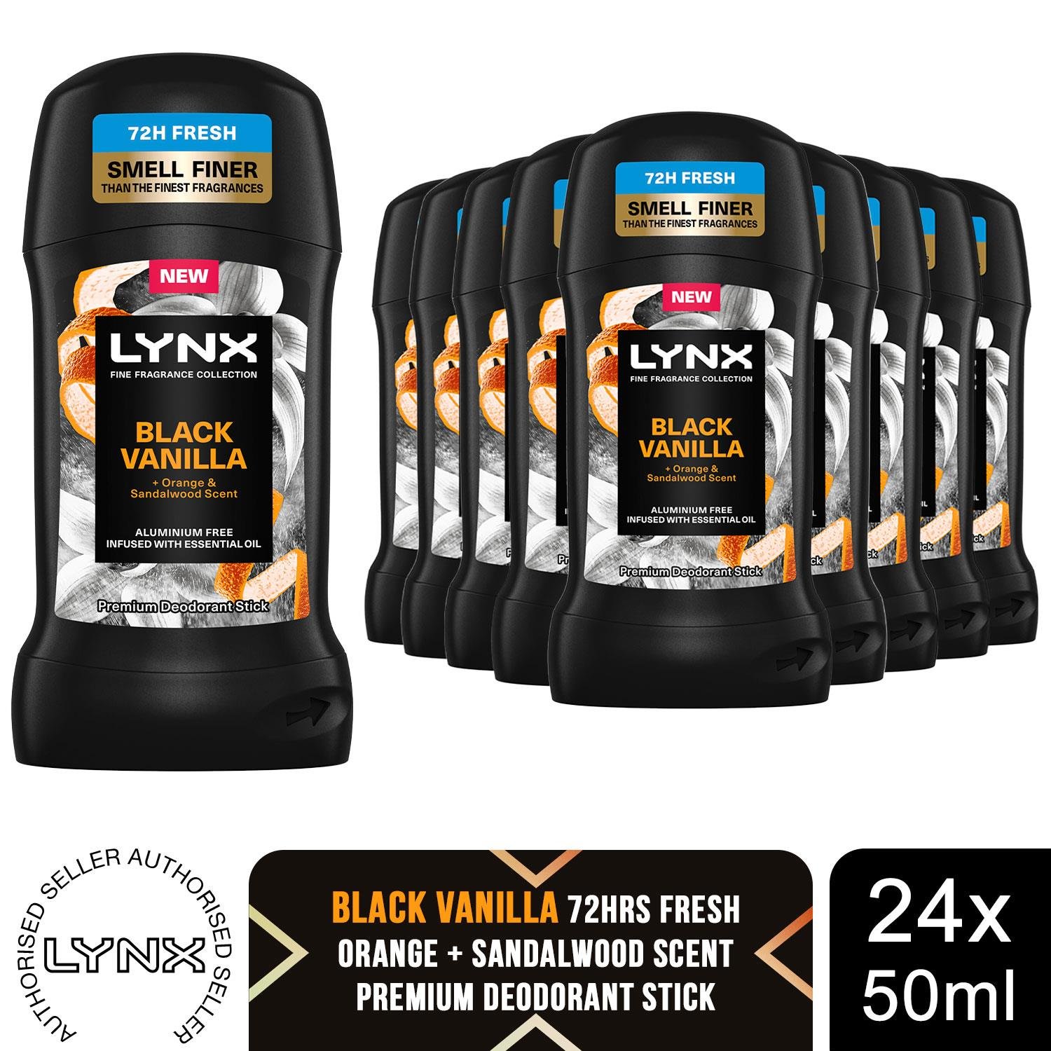 Lynx Mens Deodorant Stick Black Vanilla with 72Hrs Freshness 50ml, 24 Pack - Size 50 ml