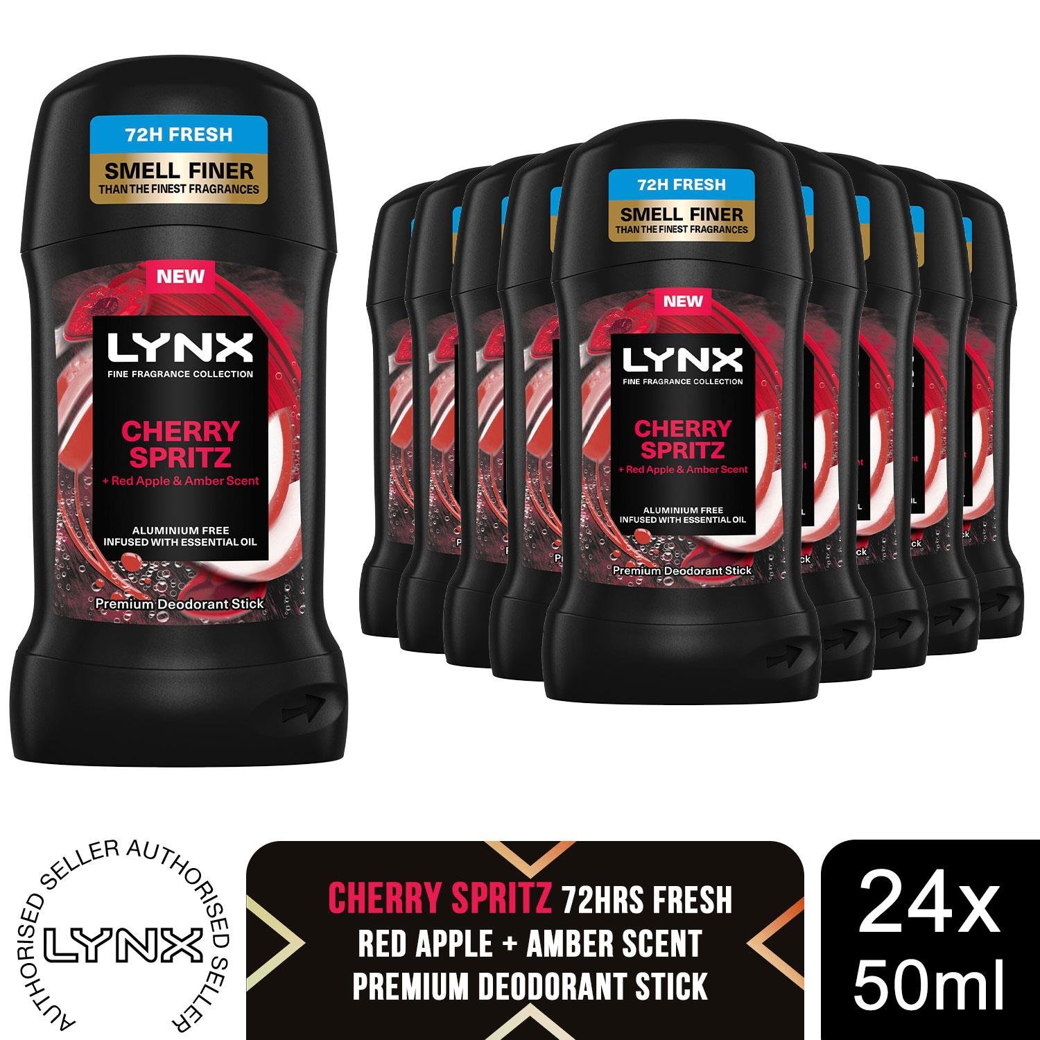 Lynx Mens Deodorant Stick Cherry Spritz with 72Hrs Freshness 50ml, 24 Pack - Apple - Size 50 ml