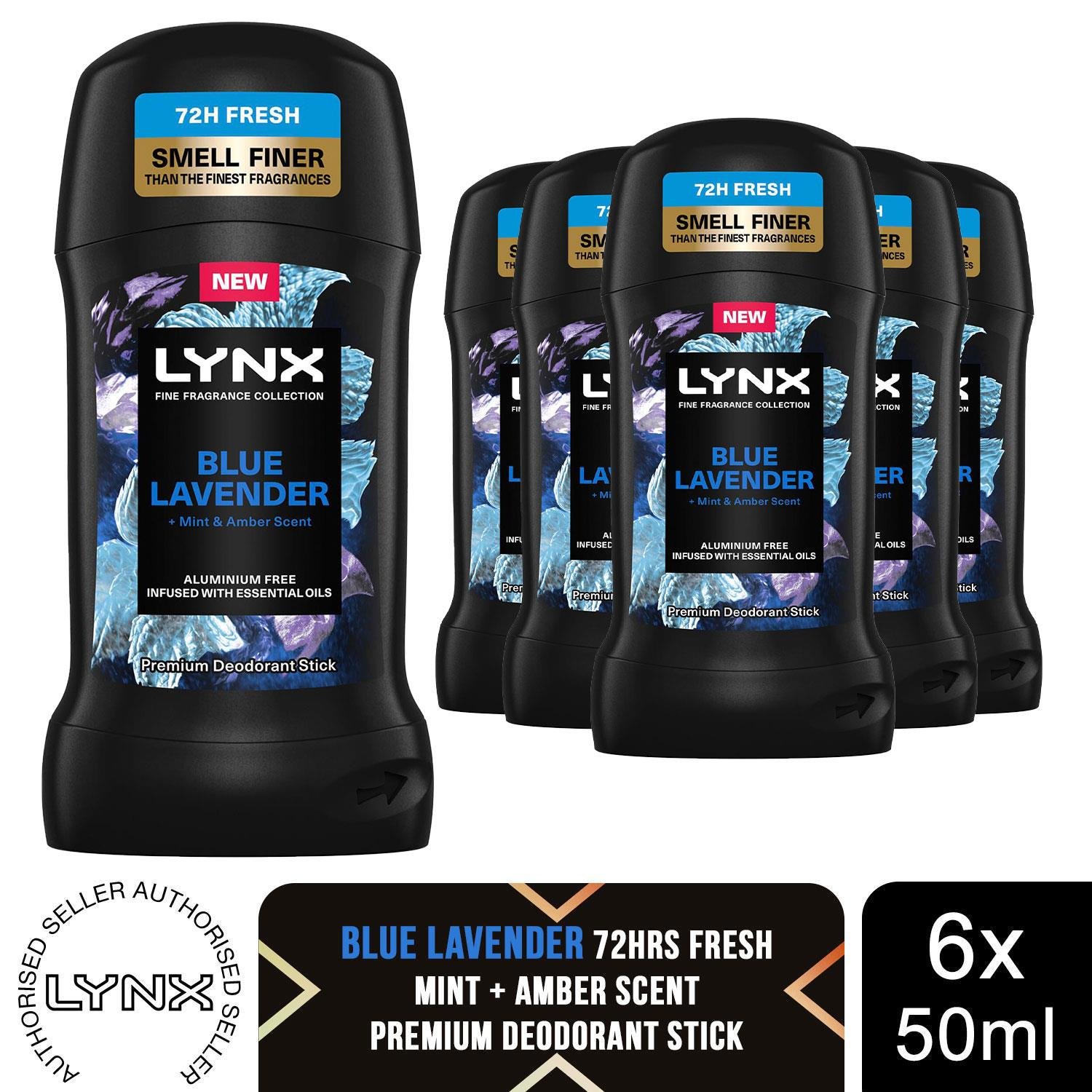 Lynx Deodorant Stick Blue Lavender with 72Hrs Freshness 50ml, 6 Pack - One Size