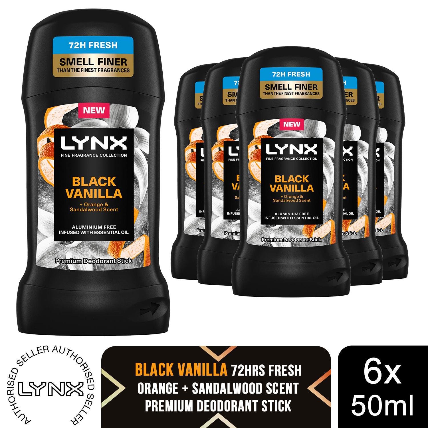 Lynx Deodorant Stick Black Vanilla with 72Hrs Freshness 50ml, 6 Pack - Size 50 ml