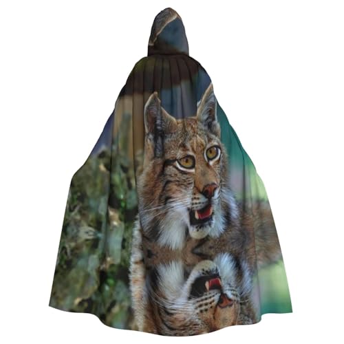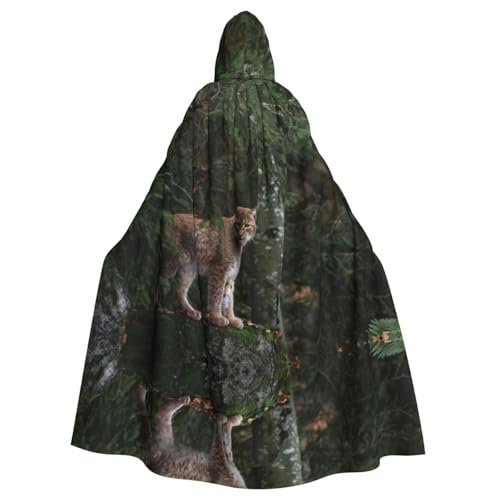aacghh Alert Tawny Forest Lynx Print Cloak Women'S Hooded Maxi Cape Coat Long Cloak Carnival Cosplay Costumes Outerwear