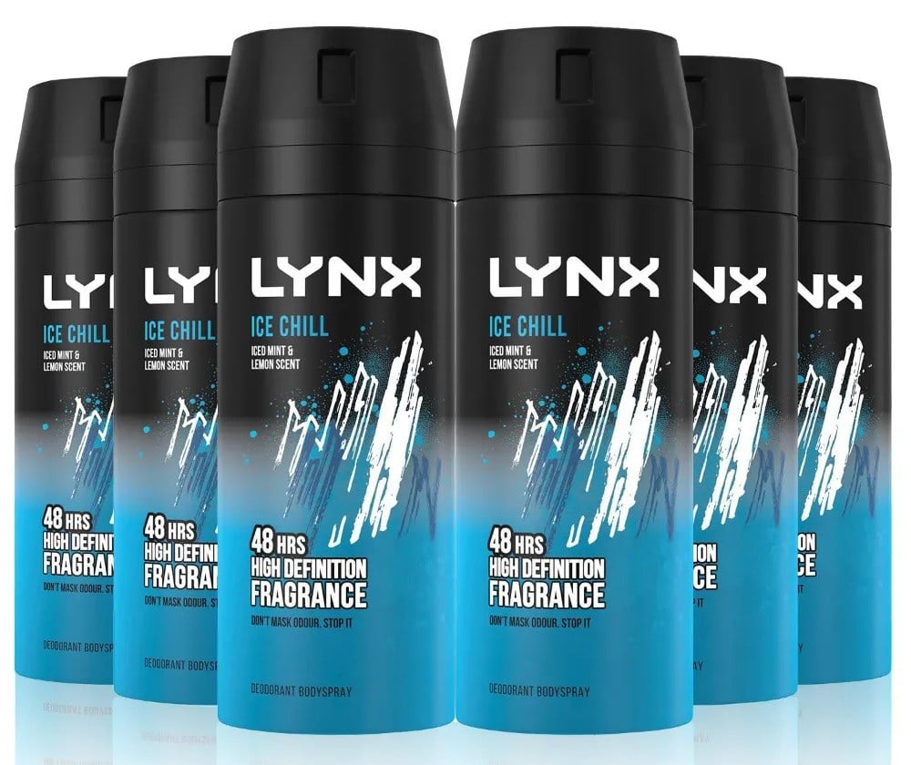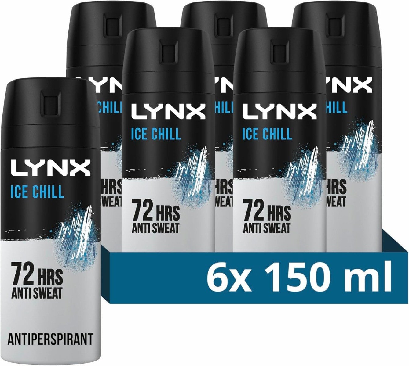Lynx Ice Chill Anti-Perspirant Aerosol Deodorant Spray 72H Protection 150ml, 6pk