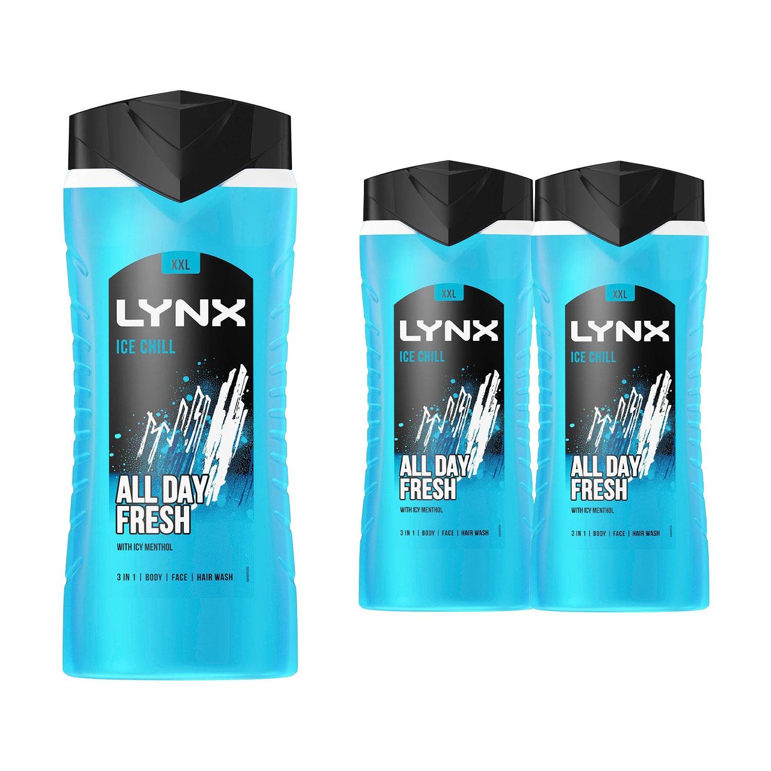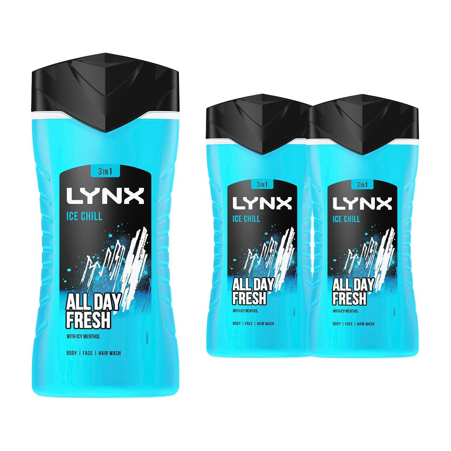 Lynx Shower Gel Ice Chill Body, Face & Hair Wash 250ml x 3