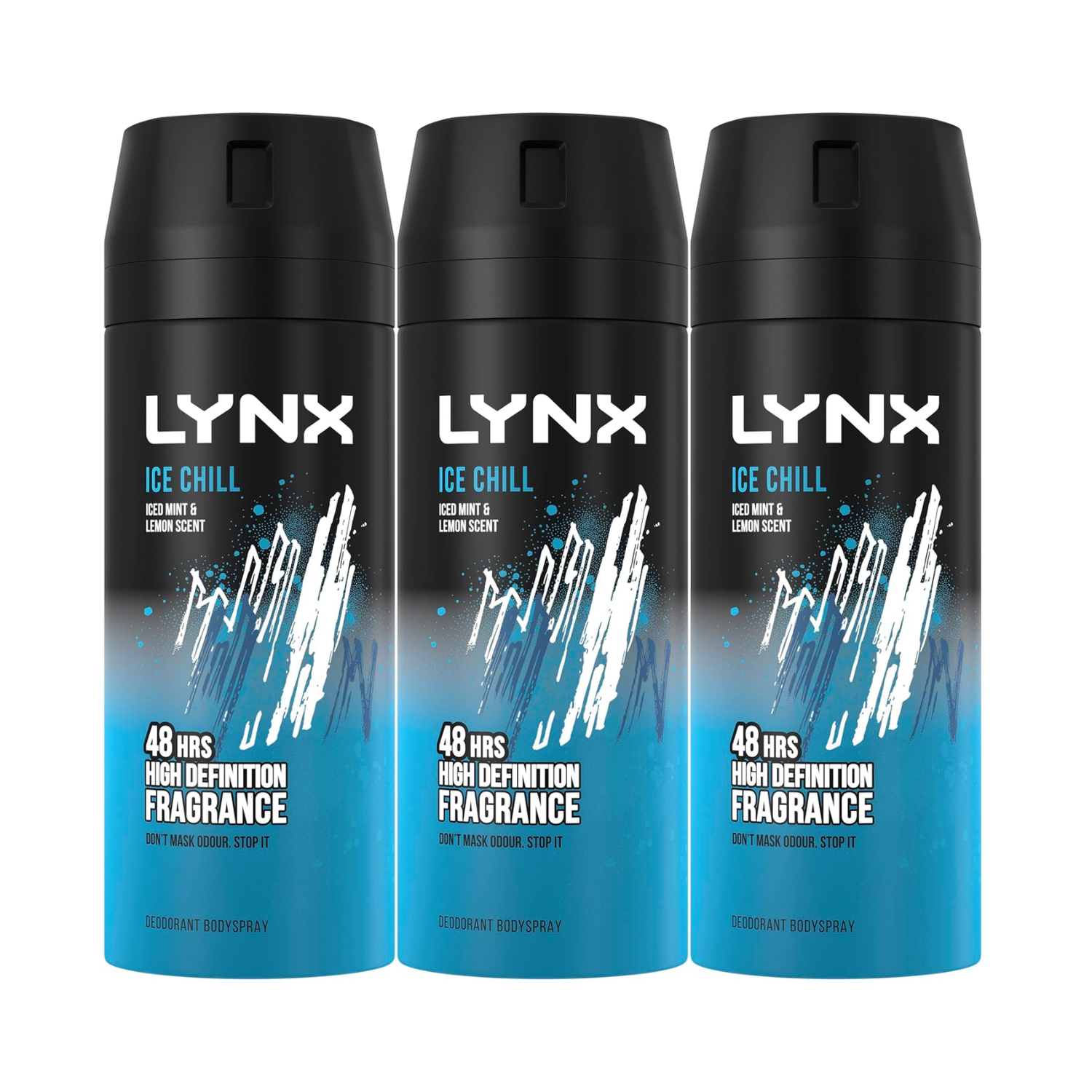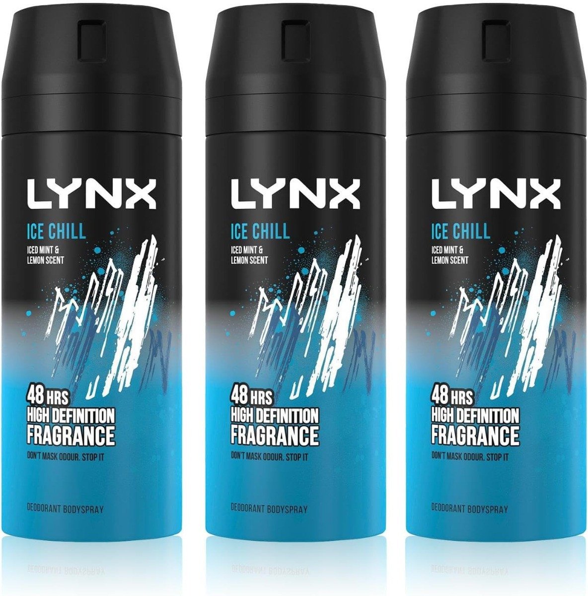 3x Lynx ICE CHILL Deodorant Body Spray 48H High Definition Fragrance 150ml