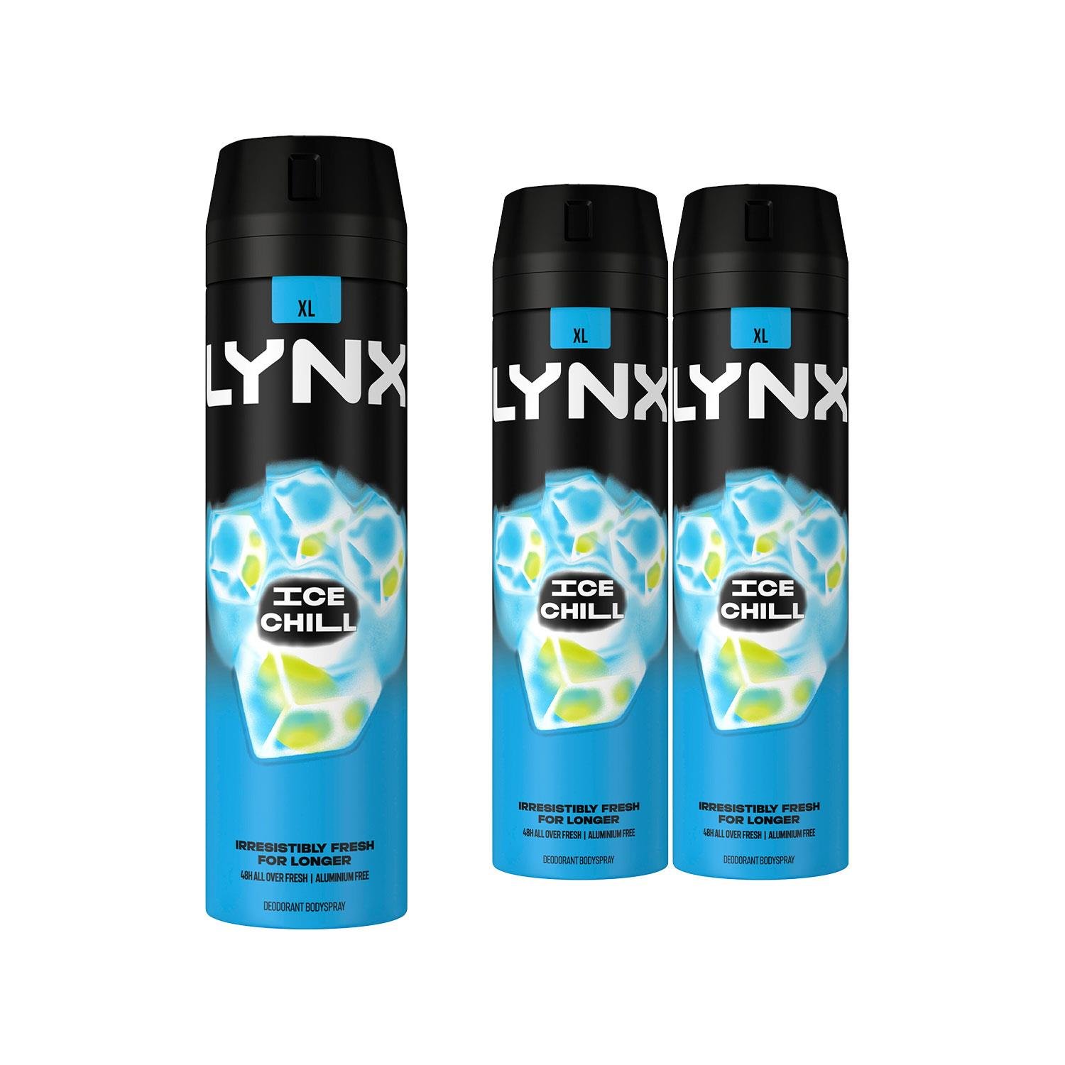 Lynx Mens XXL Ice Chill 48-Hour High Definition Fragrance Body Spray Deo, 3x250ml - Size 250 ml