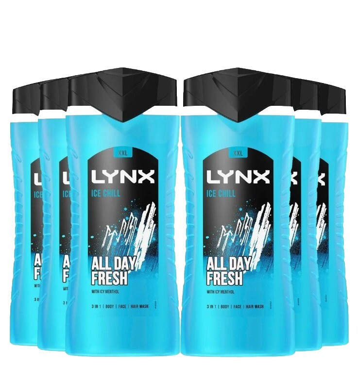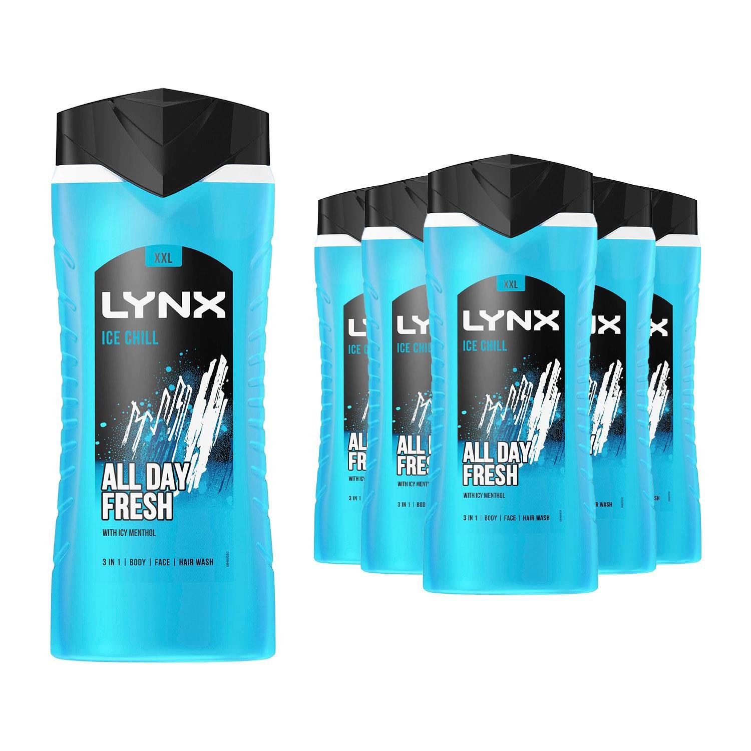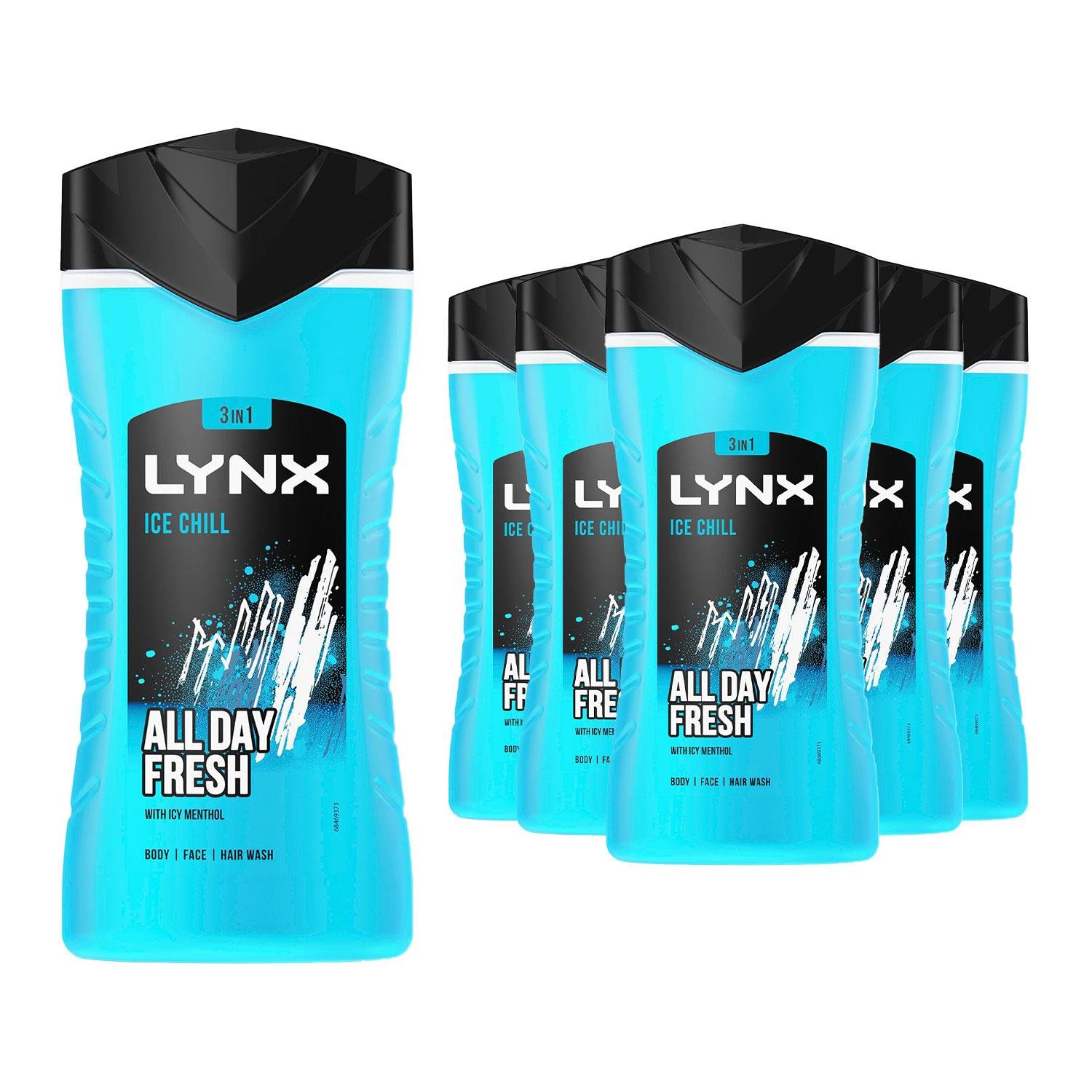 Lynx Shower Gel Ice Chill Body, Face & Hair Wash 250ml x 6