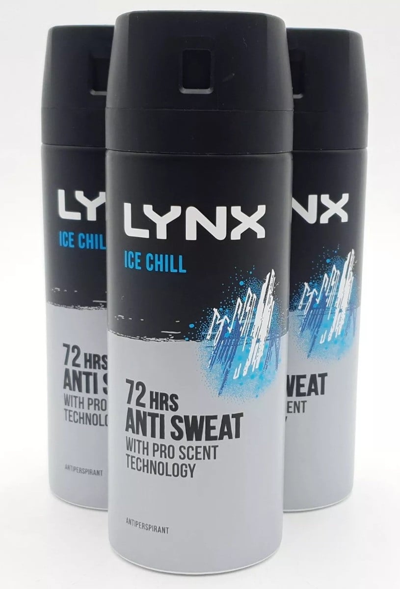 Lynx Ice Chill Anti-Perspirant Aerosol Deodorant Spray 72H Protection 150ml, 3pk
