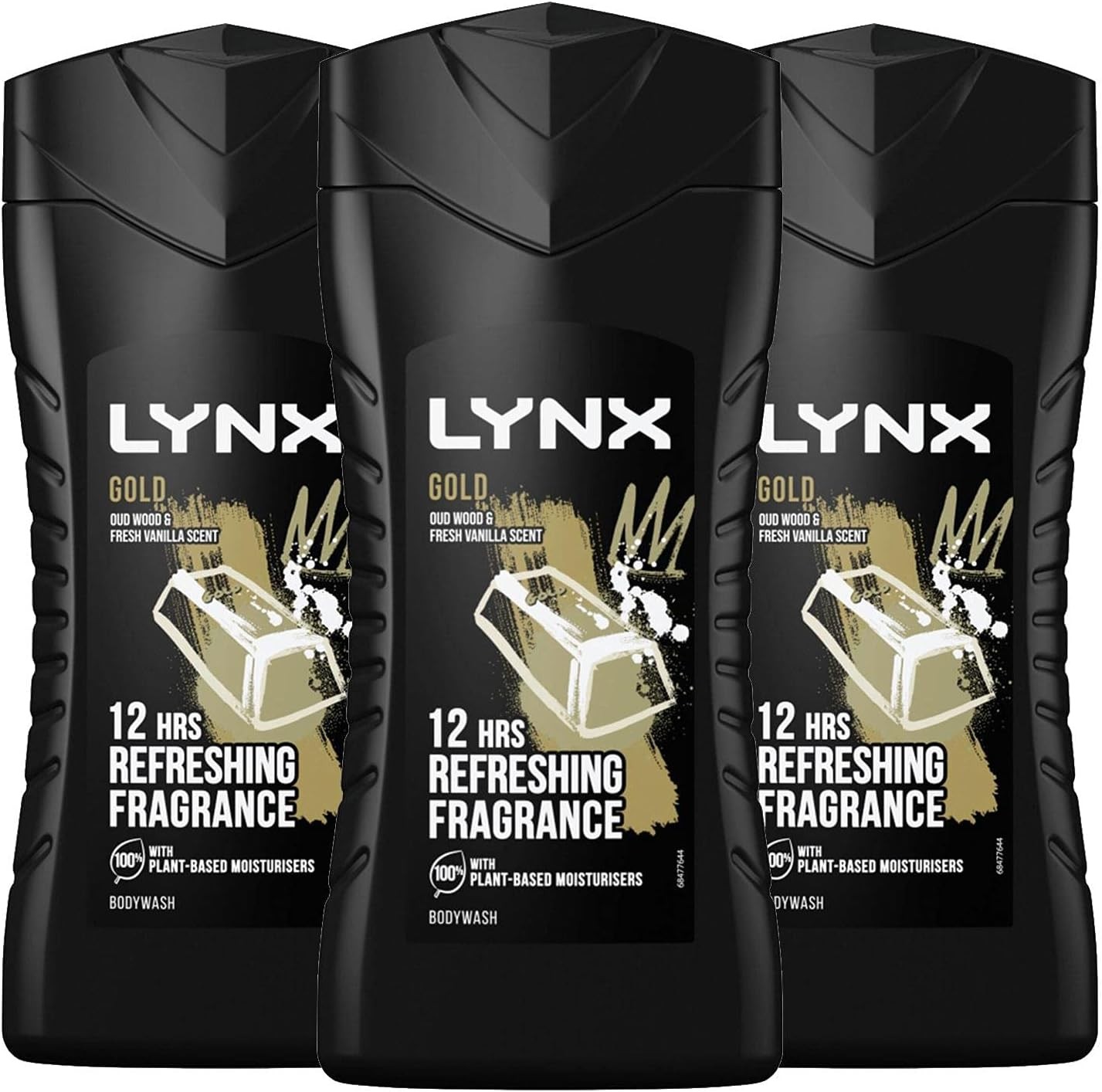 3x Lynx Gold Shower Gel 225ml Oud Wood & Fresh Vanilla Body Wash