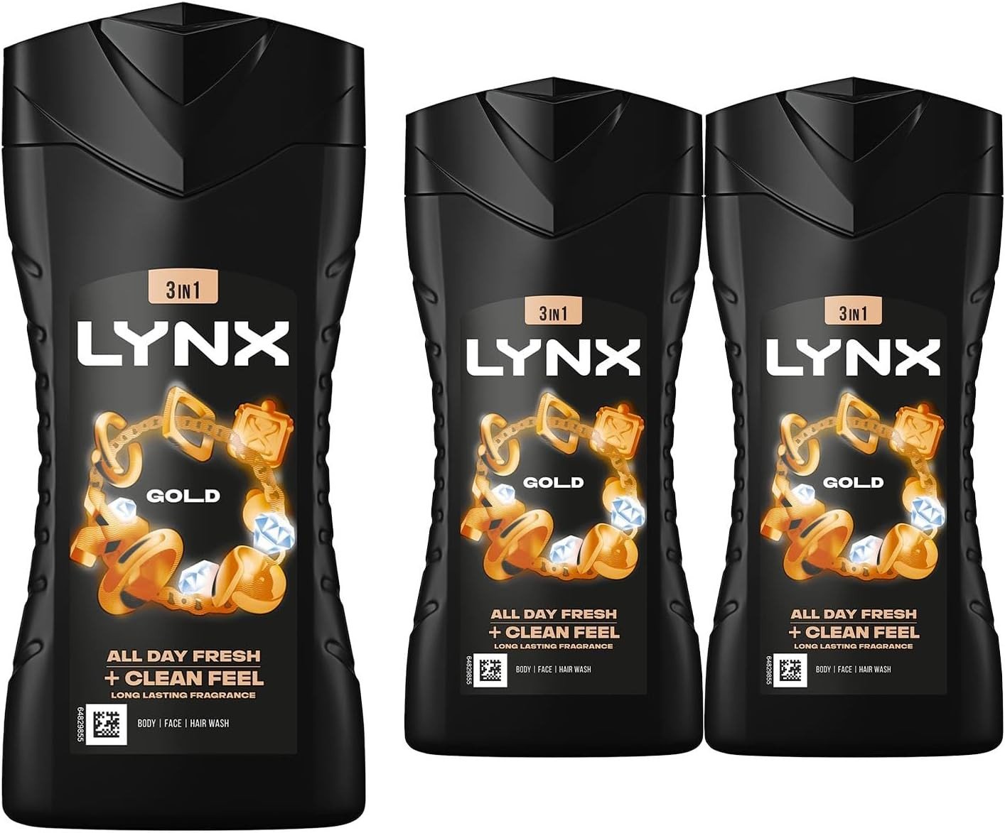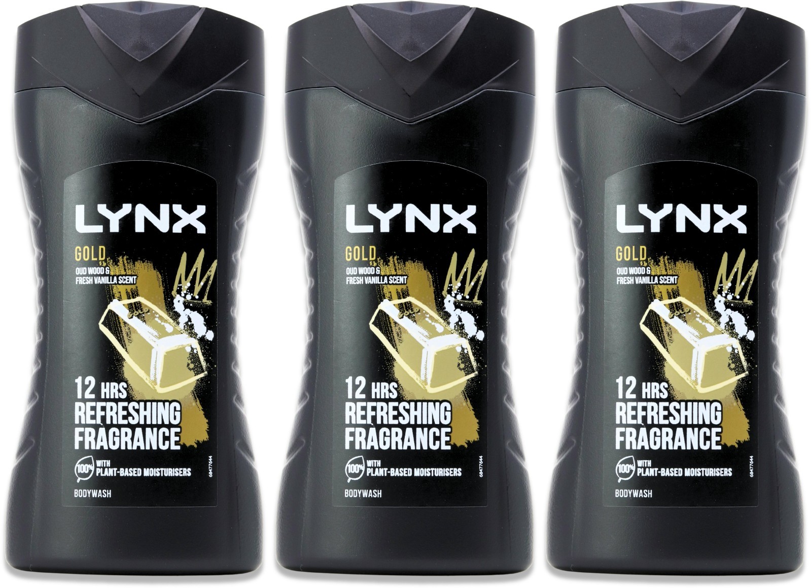 3 Pack of Lynx 12 Hour Refreshing Fragrance Gold Oud Wood and Vanilla Body Wash
