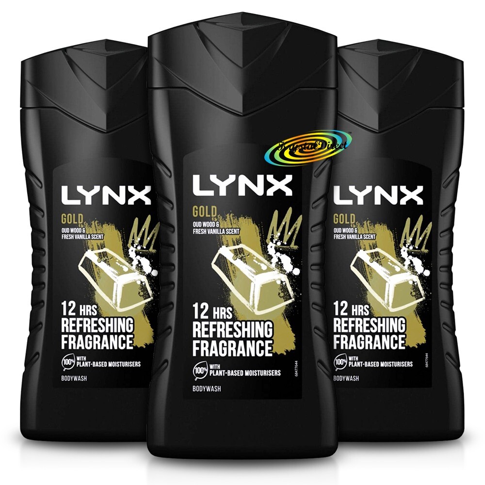 Lynx Shower Gel Body Wash Gold Refreshing Oud Wood and Vanilla Men 225ml x 3