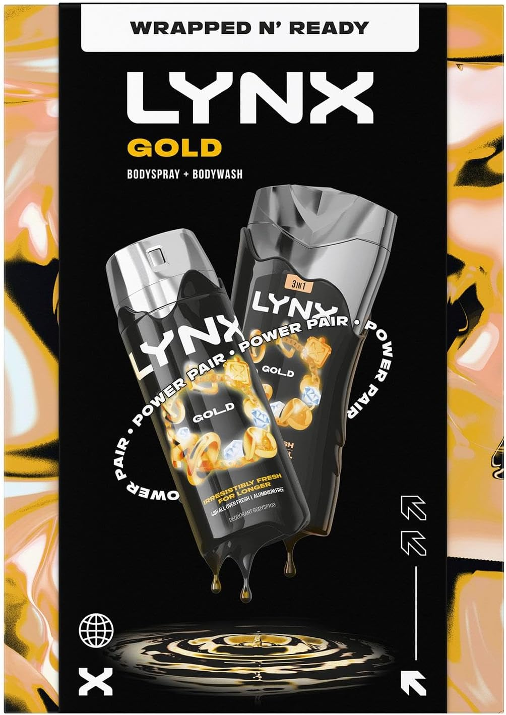 Lynx Gold Duo Gift Set for Him, Oud Wood and Vanilla Scent, Full-Size Body Wash