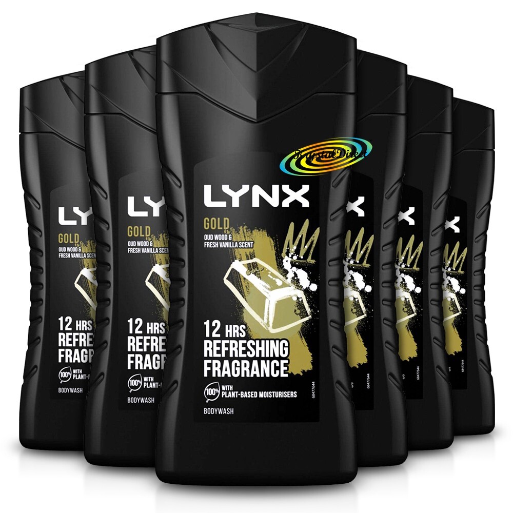 Lynx Shower Gel Body Wash Gold Refreshing Oud Wood and Vanilla Men 225ml x 6