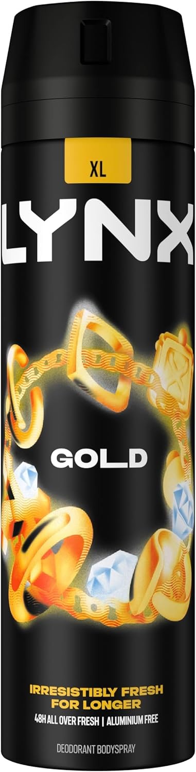 Lynx Men Gold Deodorant Body Spray with an oud wood & fresh vanilla scent with