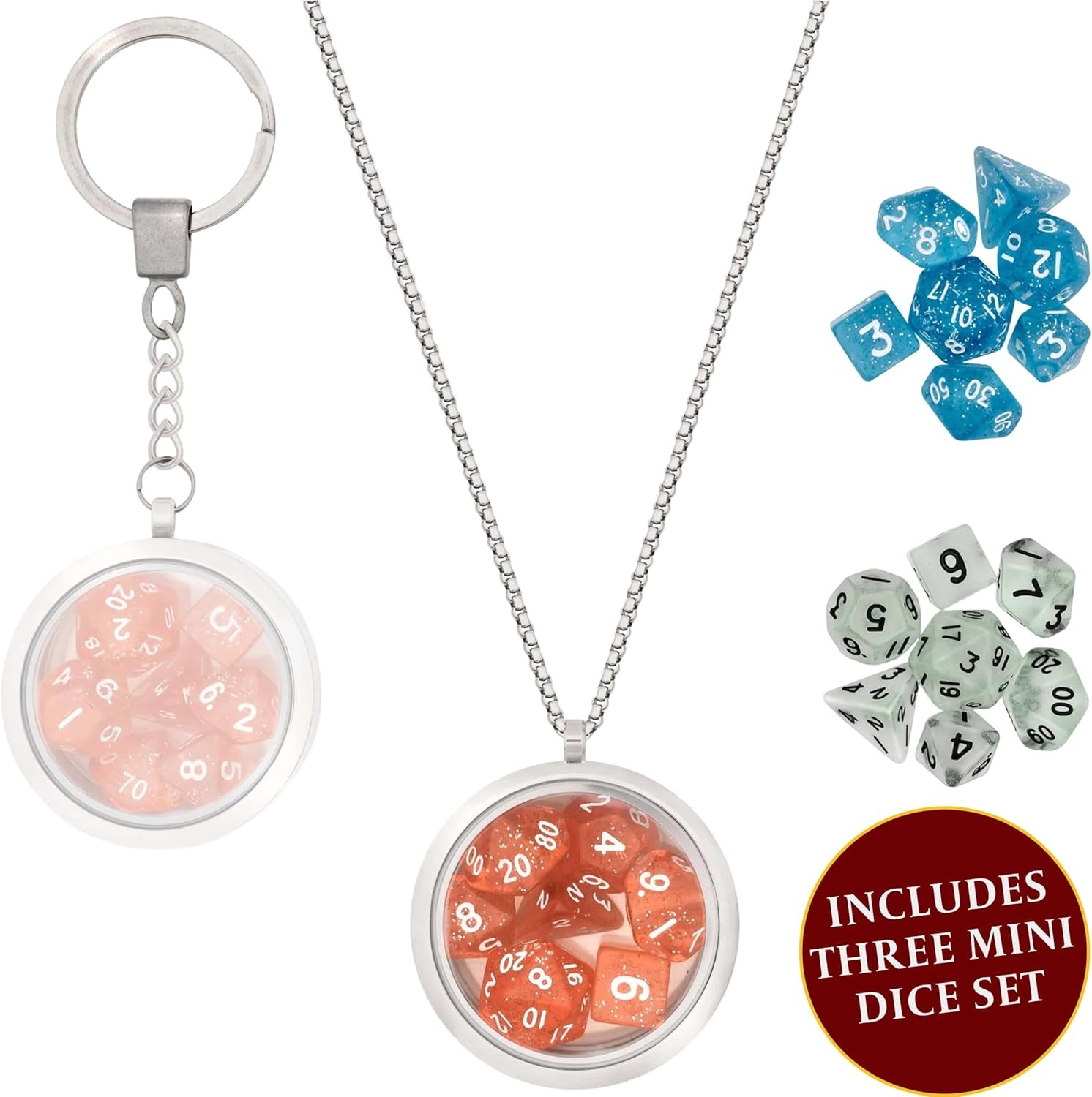 LYNX DND Dice Set Locket/Keychain - 3 Polyhedral Mini Sets Included Perfect RPG
