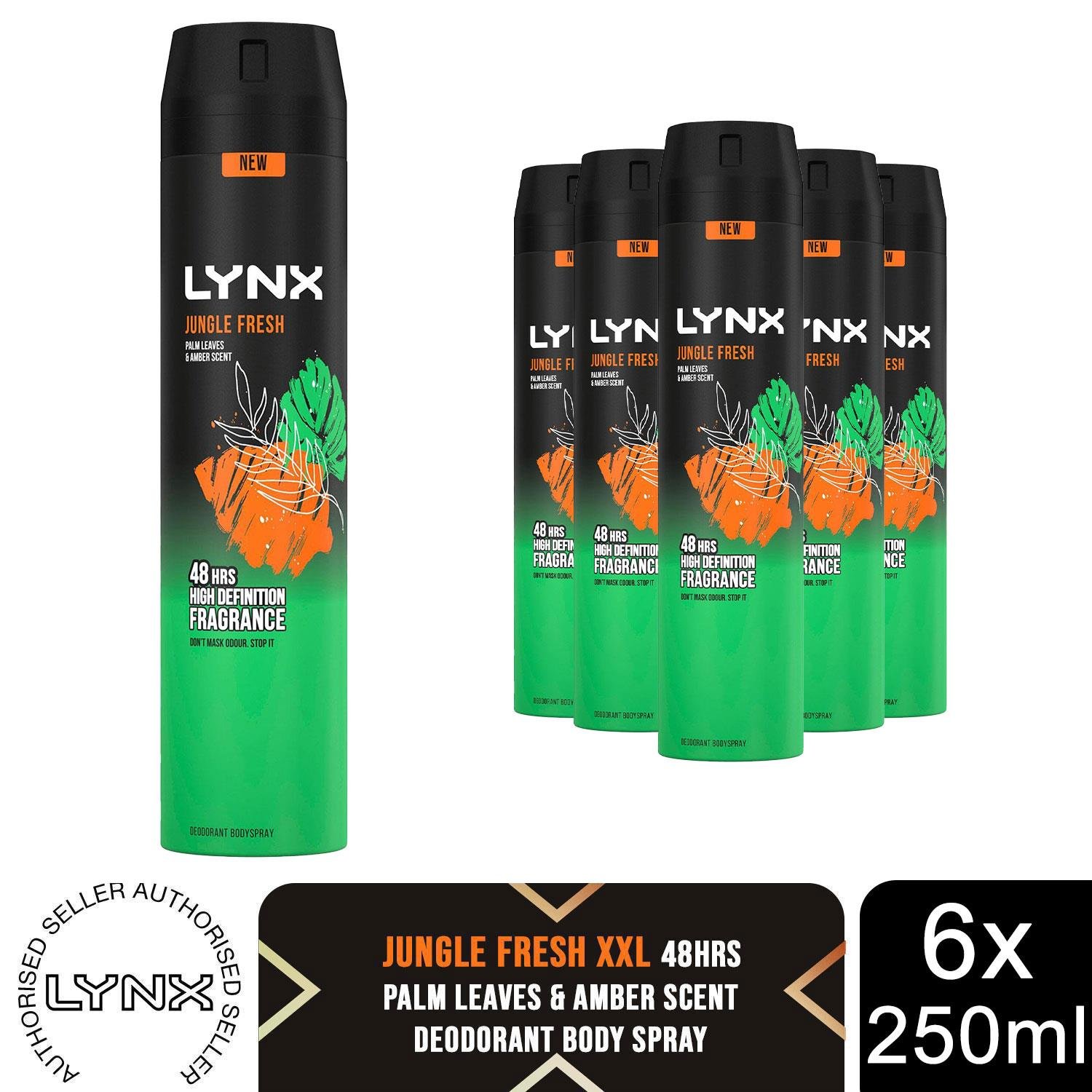 Lynx XXL Body Spray Jungle Fresh 48H High Definition Fragrance Deodorant,6x250ml