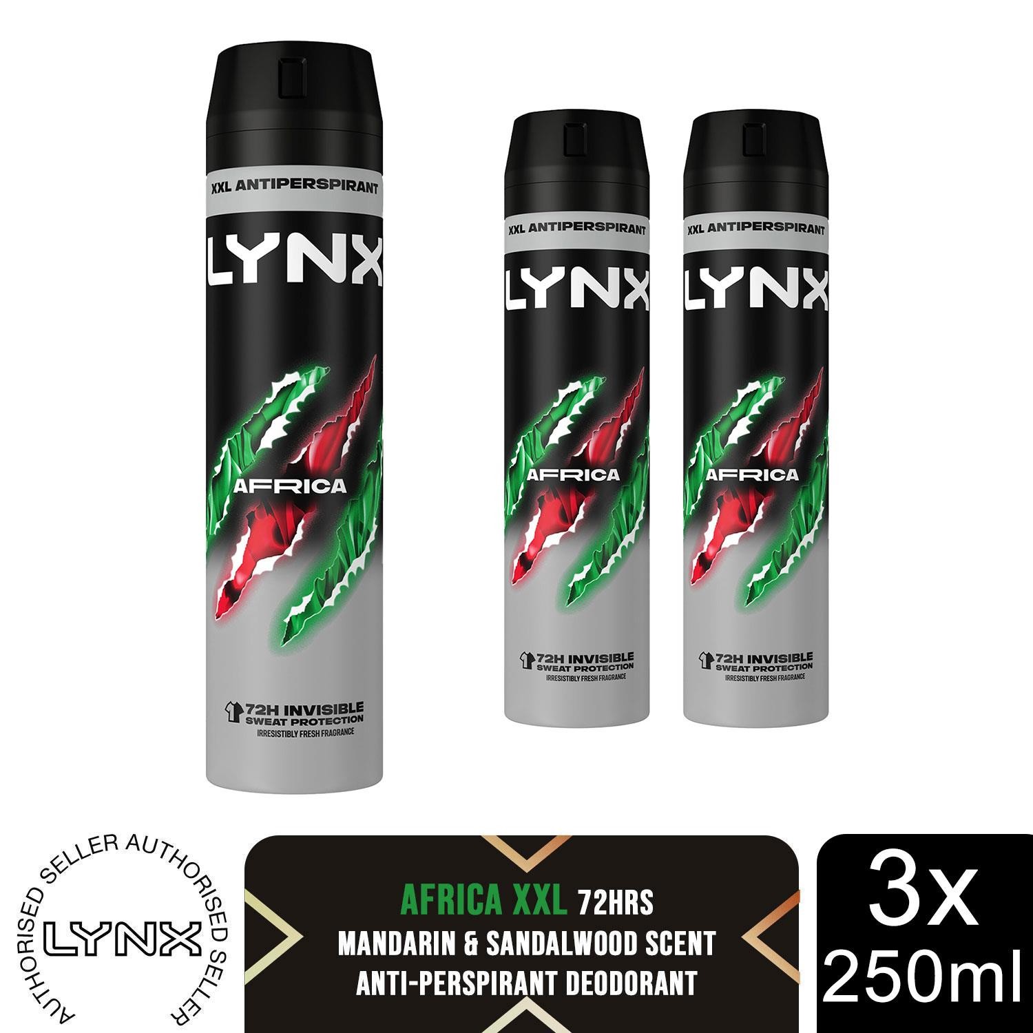 3 x Lynx XXL Africa 72H Sweat Protection Anti-Perspirant Deodorant 250ml