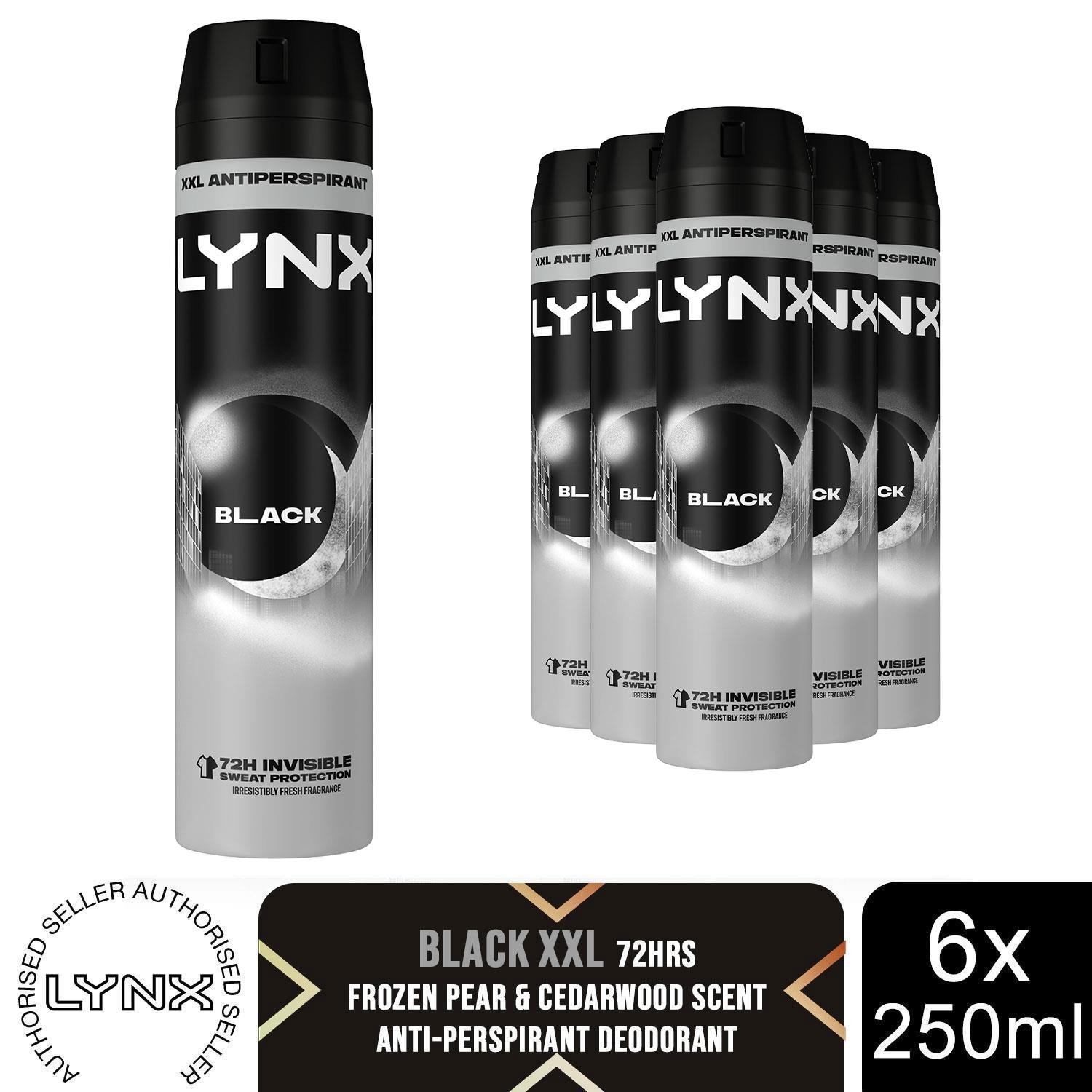 Lynx XXL Black 72H Sweat Protection Anti-Perspirant Deodorant, 6x250ml