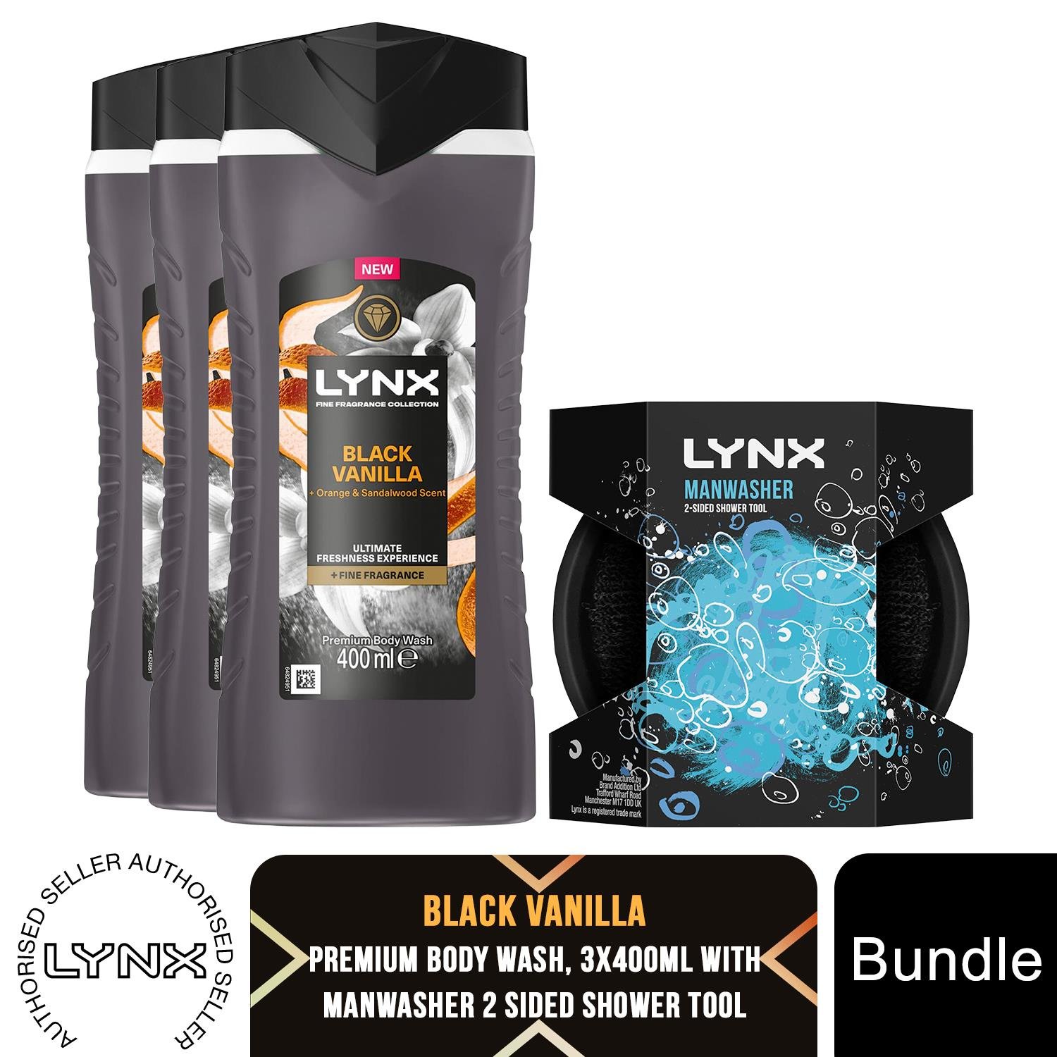 Lynx XXL Shower Gel 3x & 6x Vanilla, Lavender, Cherry, Peach with Manwasher