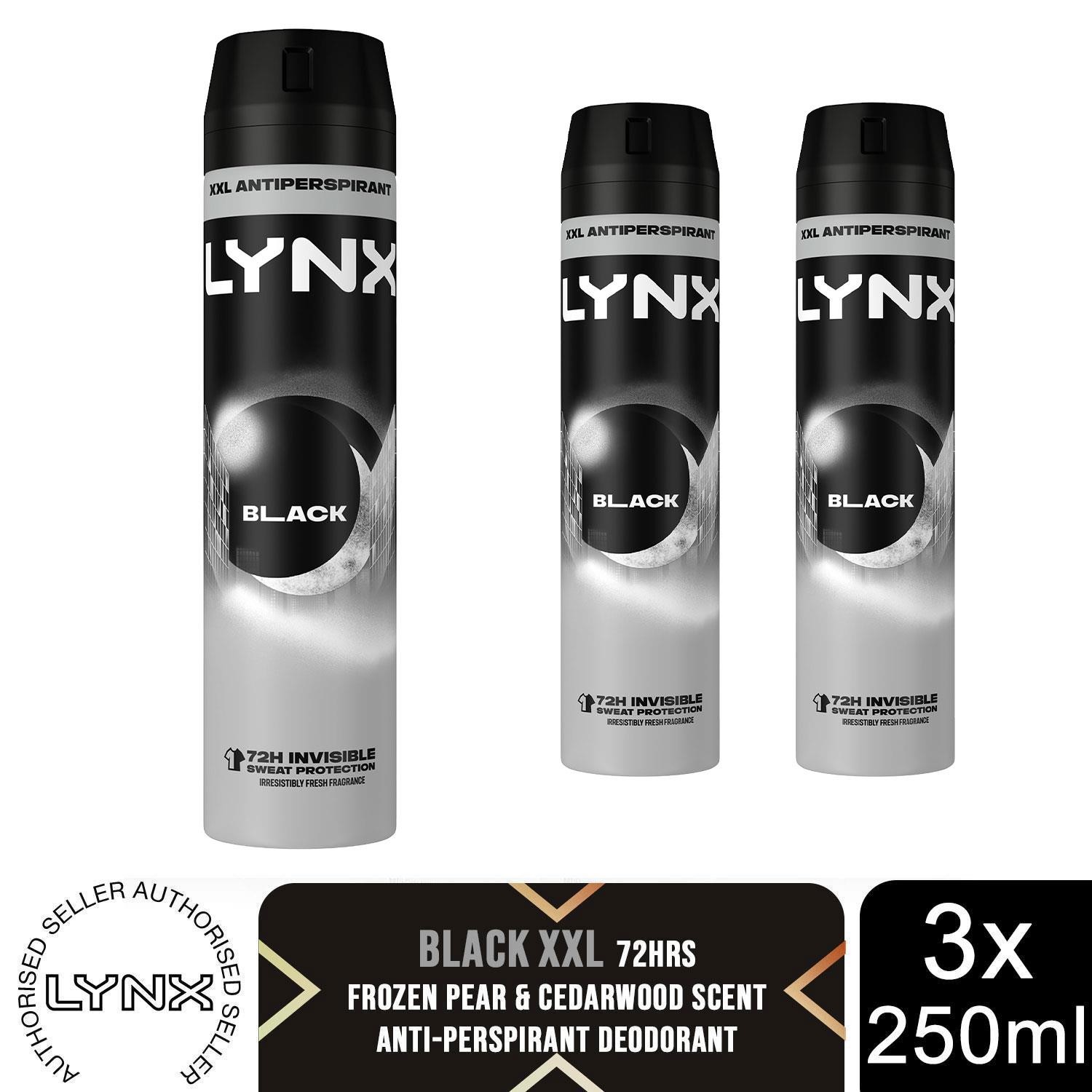 Lynx XXL Black 72H Sweat Protection Anti-Perspirant Deodorant, 3x250ml