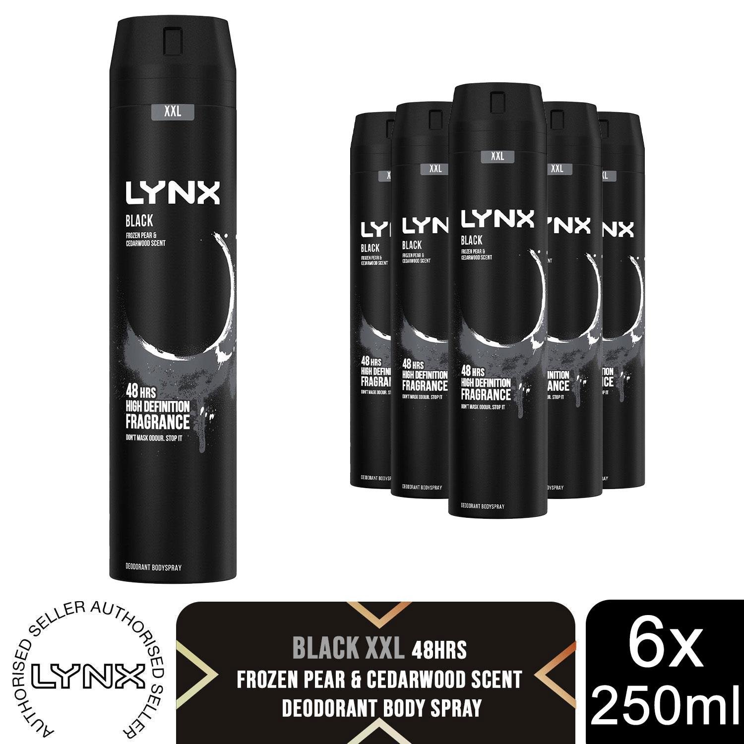Lynx XXL Black 48-Hour High Definition Fragrance Body Spray Deodorant, 6x250ml