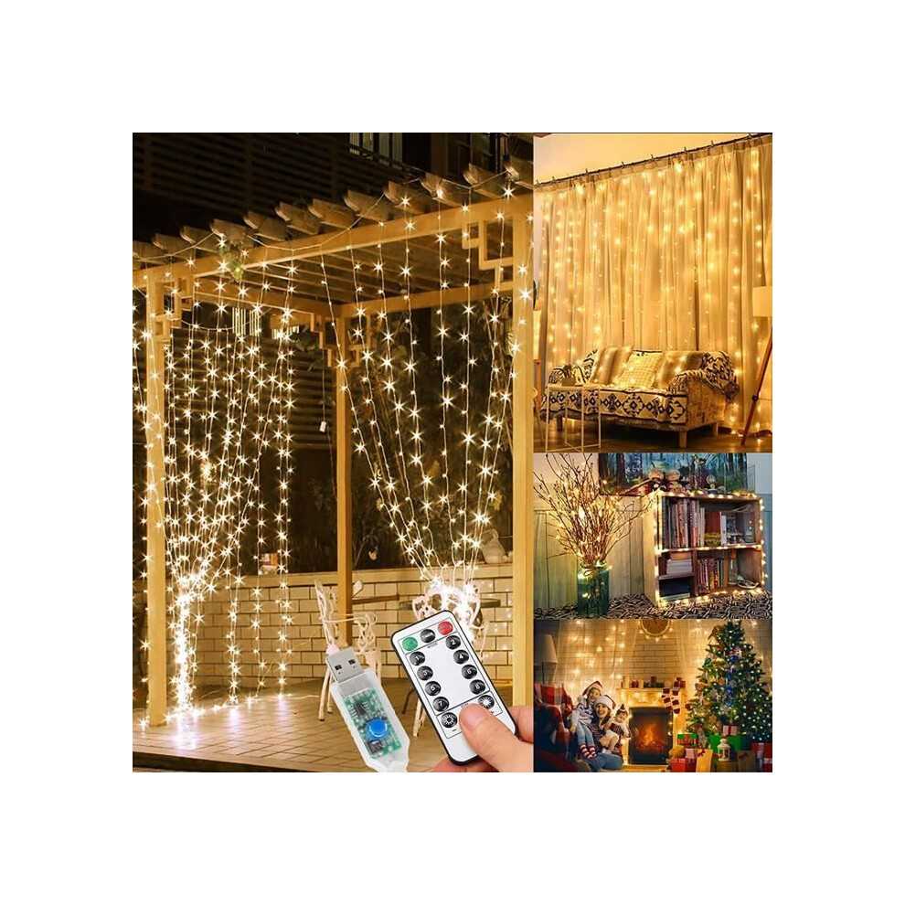 Light curtain, 3M 300 LED light garland, 8 lighting modes, USB powered, decoration for indoor and outdoor use, S[9]