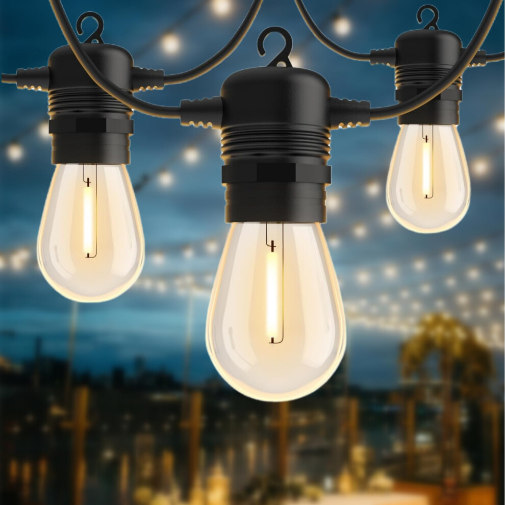 AVANLO Outdoor String Lights 100FT /30.5M Festoon Patio Lights Outside Led S14 Lighting Waterproof Mains Powered Shatterproof Edison Bulbs Connectable