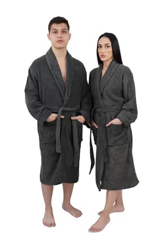 Graphic Impact Ltd Unisex Bathrobe Towelling Super Soft Bath Wrap Housecoat Spa Gym Shawl 100% Egyptian Cotton Terry Plain Bathrobe (Charcoal, S-M)