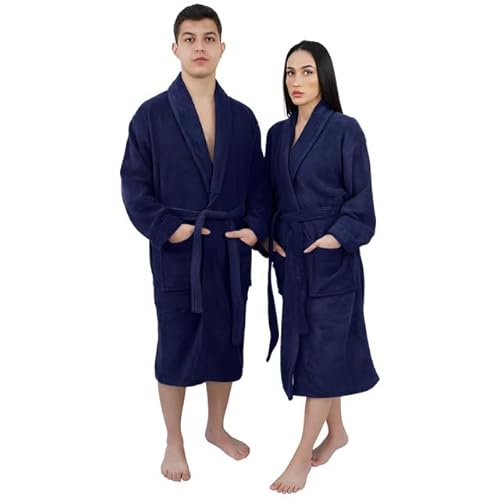 Graphic Impact Unisex Bathrobe Towelling Super Soft Bath Wrap Housecoat Spa Gym Shawl 100% Egyptian Cotton Terry Plain Bathrobe (NavyBlue, S-M)