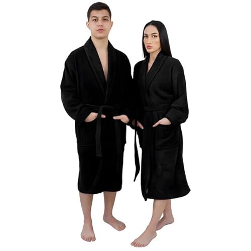 Graphic Impact Unisex Bathrobe Towelling Super Soft Bath Wrap Housecoat Spa Gym Shawl 100% Egyptian Cotton Terry Plain Bathrobe (Black, S-M)