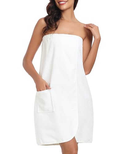 Lovasy Women's Wrap Towel Robe Wrap Spa Bathrobe Terry Towelling Bath Robes for Women Adjustable Buttons Closure Shower Towel,White,S-M