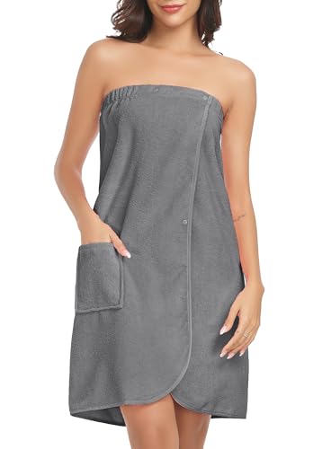 Lovasy Women's Wrap Towel Robe Wrap Spa Bathrobe Terry Towelling Bath Robes for Women Adjustable Buttons Closure Shower Towel,Grey,S-M